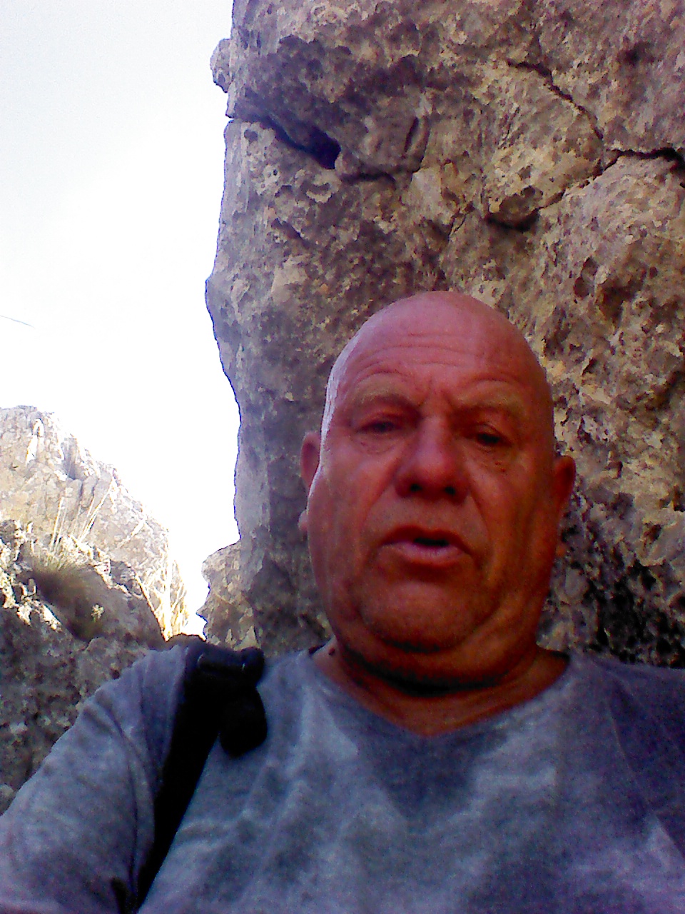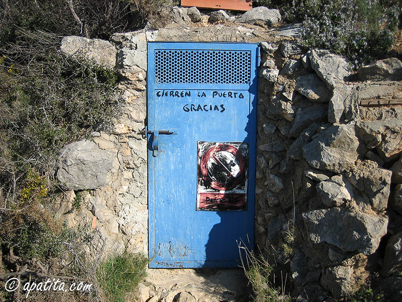 Finally reaching the picnic area I ran to the taps in the covered section and turned them on – nothing. Bone dry. I went into the toilets and there was no water there either. I was about four miles from the car but I’d have to climb up round the western side of the Sierra, which wasn’t as high as the summit but it was getting hotter all the time. It was about noon by now and I’d set off at 7am. I decided to give it a go. There were a few old mountain farmhouses but they were deserted. I set off up the hill again and covered a mile up a zig zag route but I was in danger now of overheating and dehydrating. I turned a corner on the footpath and there was a door in the hillside with a bolt and a sign saying please close the door and that no dogs were allowed Inside. It was signed as a Font. I pulled open the door and in the darkness heard a drip. There was a light on my phone and I could make out an ancient trough with water dripping off the moss into it. I drank like a donkey. I poured it over my head but it was freezing and gave me a shock – straight from the bowels of the mountain. Sweetest tasting water I ever tasted. Yay!