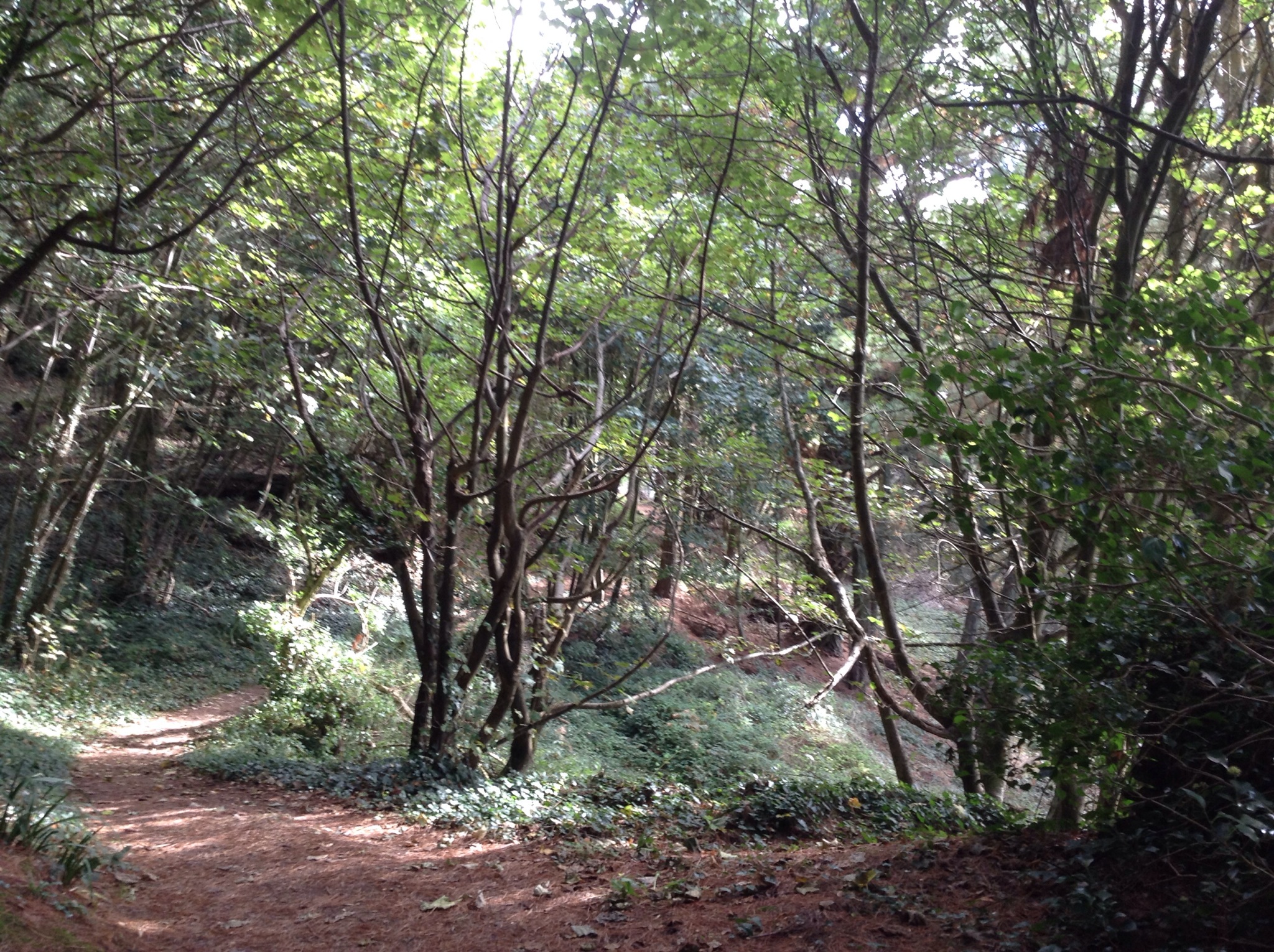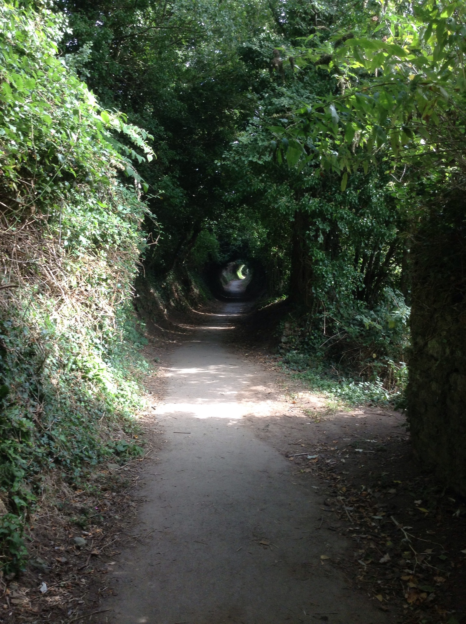 The route to Rame’s Head, being the southernmost point of Plymouth’s natural harbour, runs up hill and down dale (again), along cliff tops and through some woodland. Tree tunnels like this.