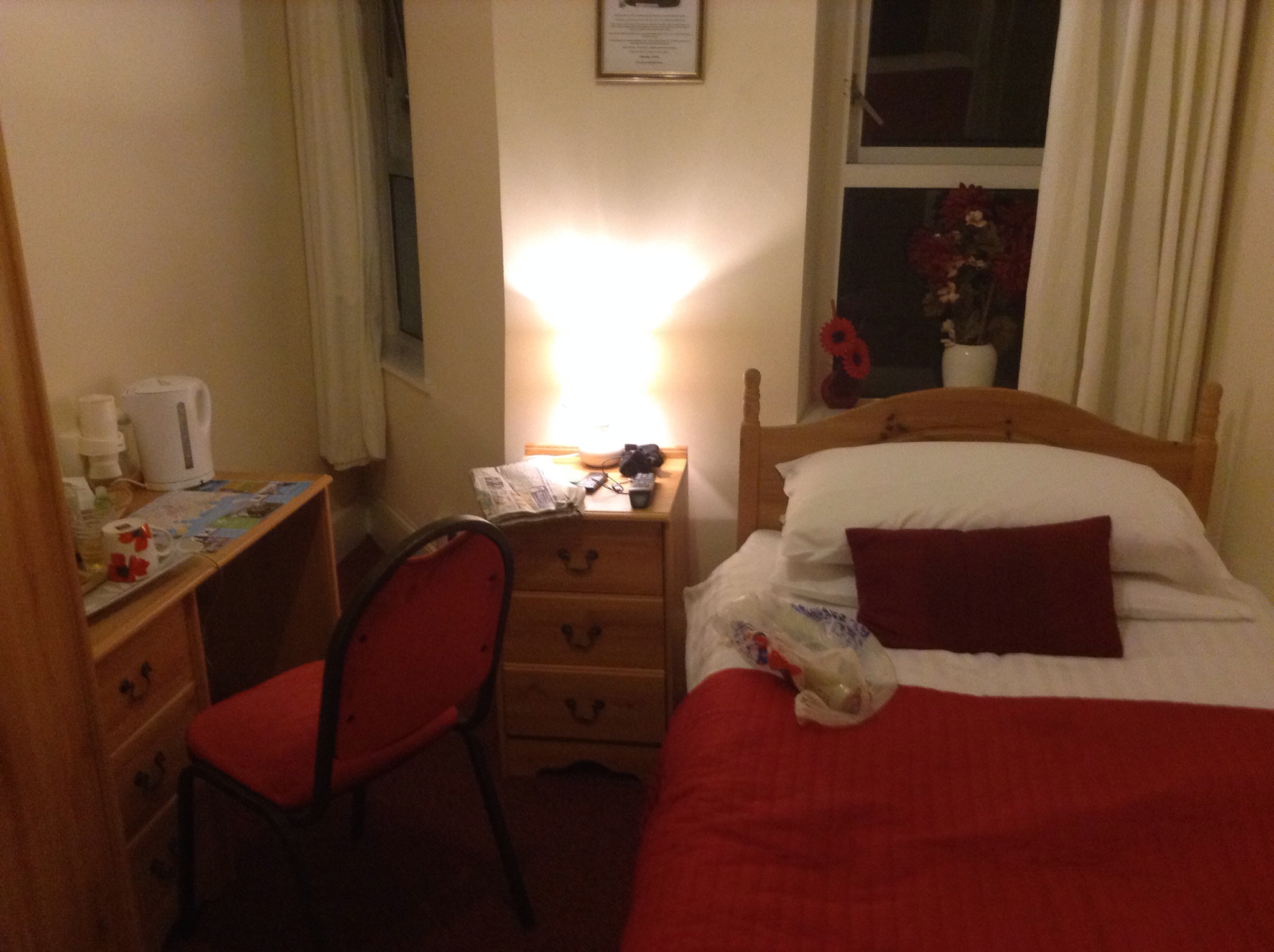 I found a launderette in Plymouth and cleaned my clothes, no machines for my sleeping bag so that stinks on. I found a Wetherspoons for tea. I’m in a bed tonight – cop this photo matey boys and girls, no freaking picnic tables but a real room and a real bed. First time in three weeks, how good is this!