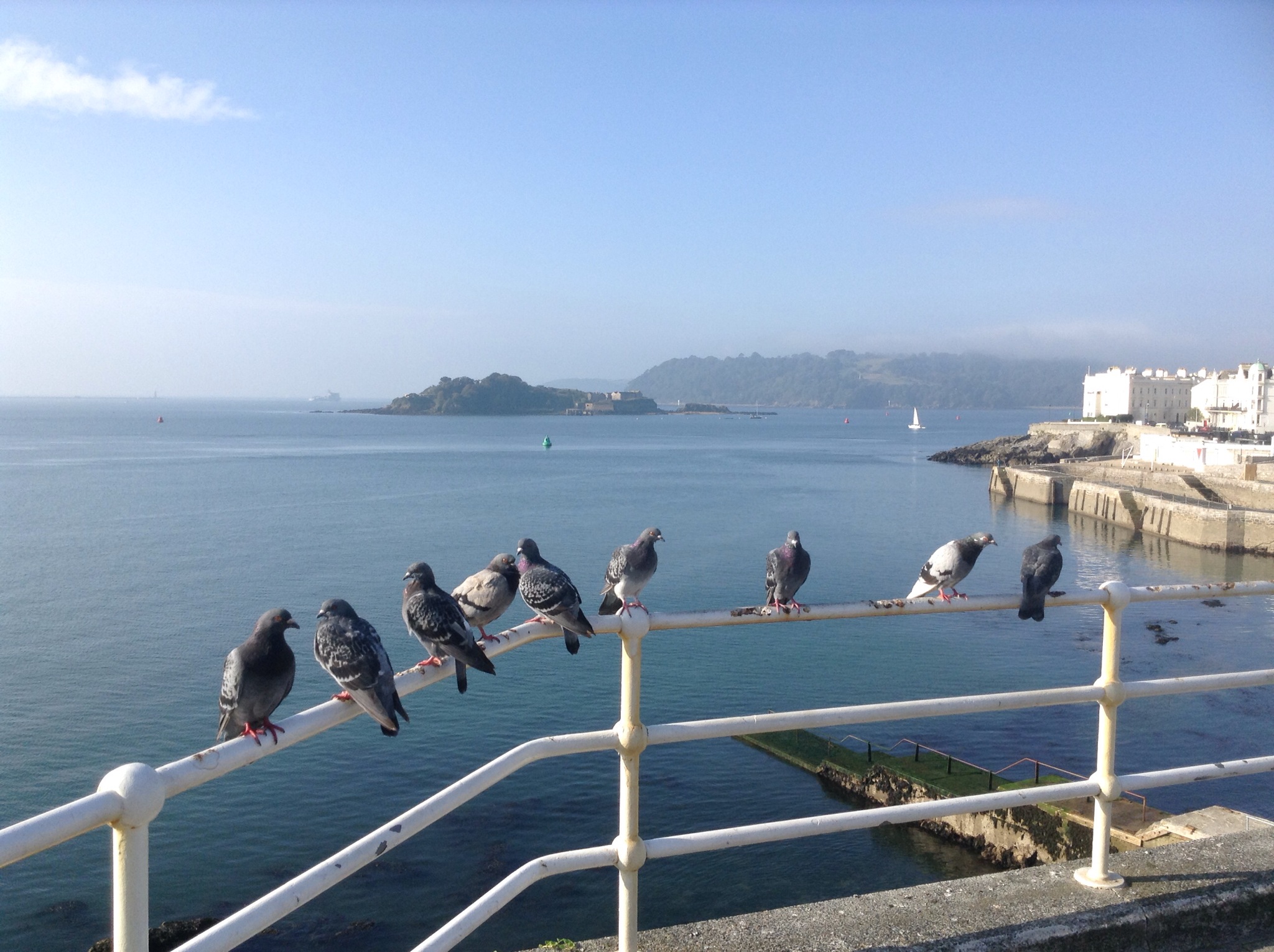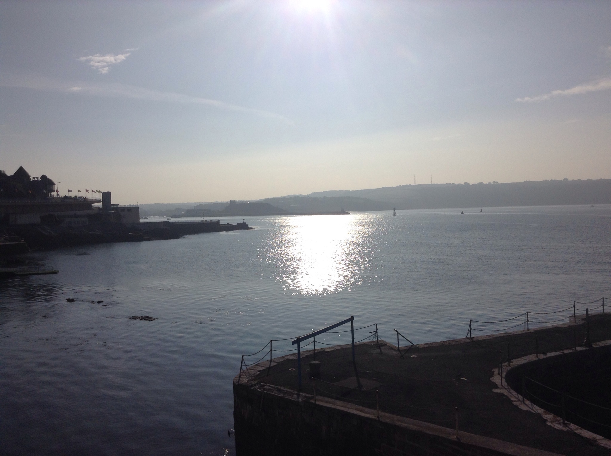 A great breakfast this morning. Ate lots and not needed anything other than a can of sardines and a potato salad for the rest of the day. The day has been phenomenally warm and clear at times. I thought Plymouth was a cackhole but the route walks around the docks and bays for 8 miles before heading down the coast. First thing the sun was out and the air was still. The place had a Mediterranean feel with terraces on the sea wall serving breakfasts and hot drinks. These are seafront Plymouth photos.