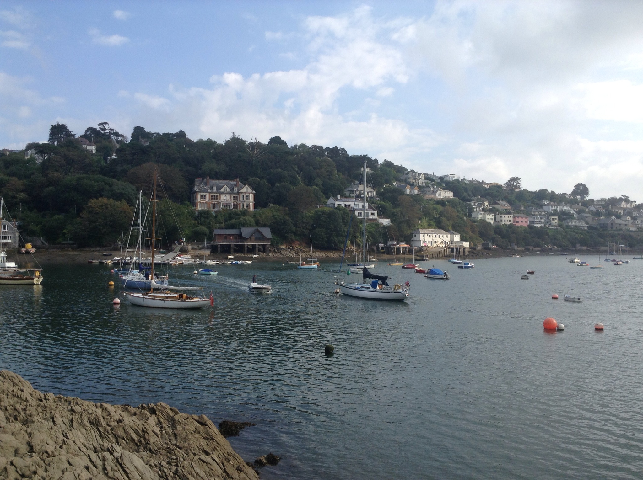 This is Salcombe looking back from the ferry landing stage and the beach on the east side.