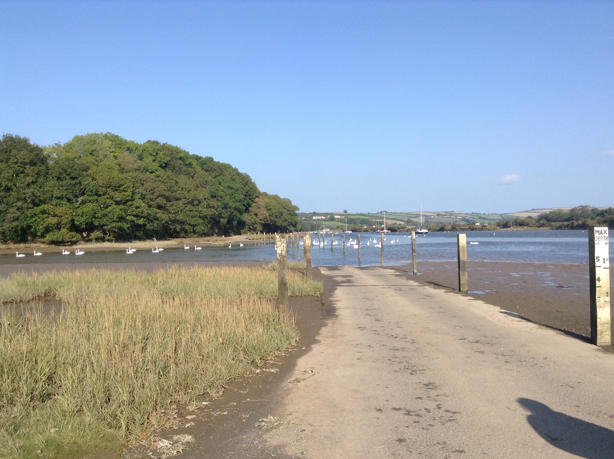I needed to get the first ferry across a river estuary this morning at 10am ( I’d been advised to cross early as the ferryman gets drunk at lunchtime and his steering becomes erratic) and then leg it 9 miles to wade across the next estuary before the tide came in too much. I made the first objective. Arriving at the jetty on the river Yealm I turned round a white sign as a primitive indicator to the ferryman at his house on the far bank that I wanted to cross. He headed straight for me.