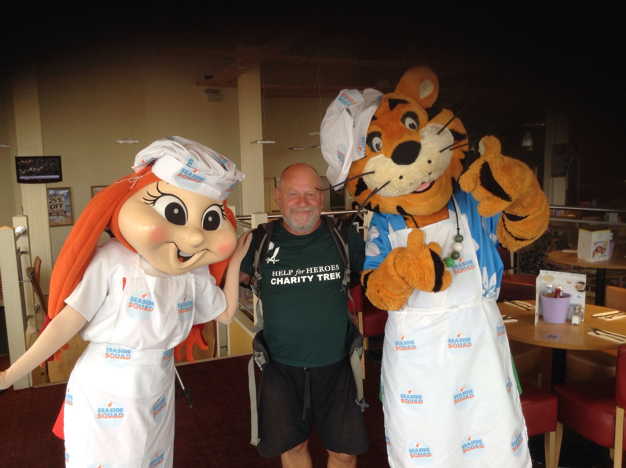 Yesterday morning I was up for an early start. There was a fair bit of interest in my mission, two guys on site were ex-forces and we had some good chats, and Mary who runs the site came round, gave me a tenner for H4H and we talked about her and her husband’s life as they are going to let the site go next year. Nice folk. I walked over to the Devon Cliffs Holiday Park where the Coast Path runs through and had breakfast in their big entertainment complex. Not great but I made two new friends.