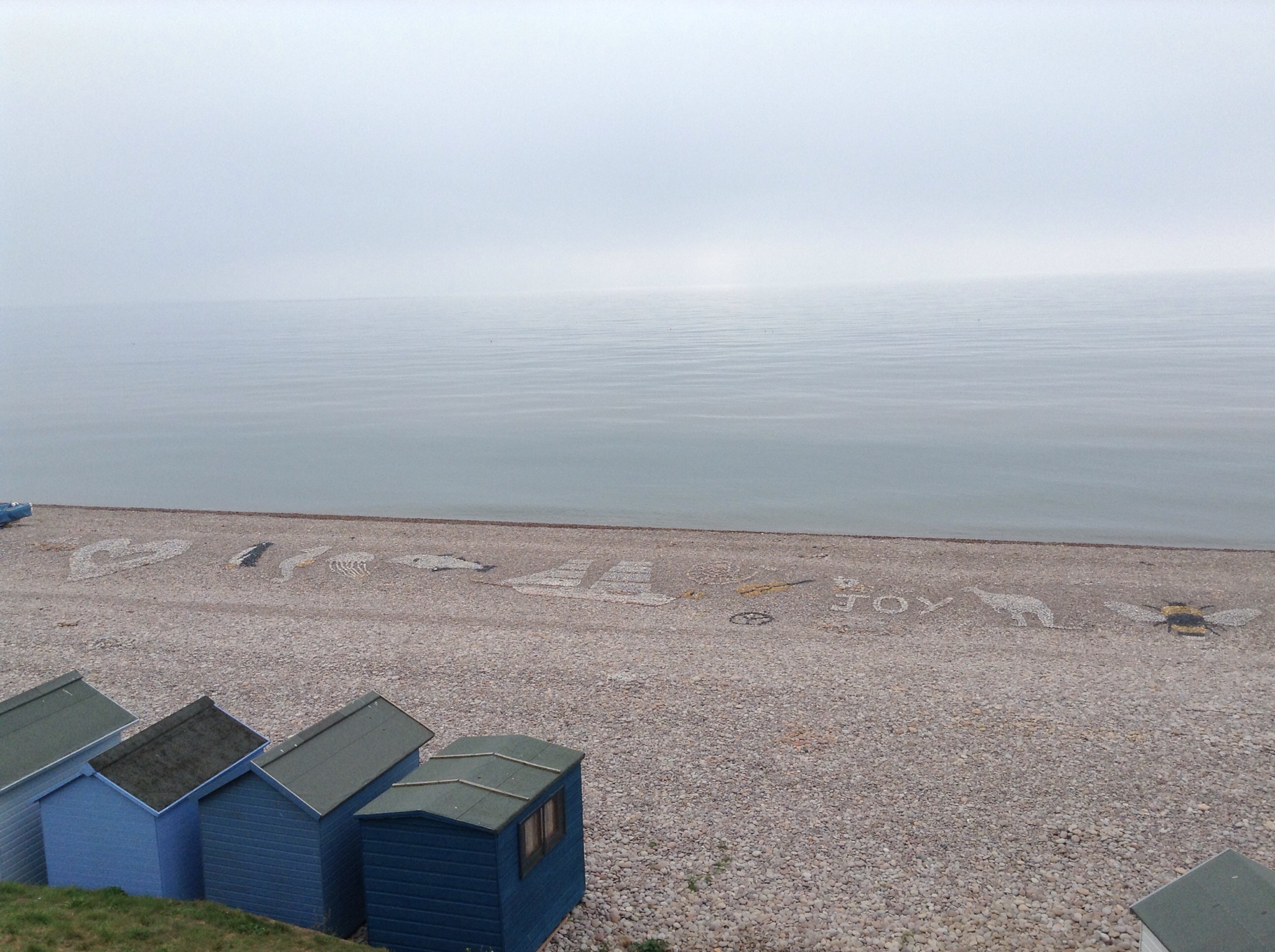I carried on to Budleigh Salterton, what an elegant village! The weather was overcast but as usual it cleared up and the sun shone later. The place was characterful and marks the border between South and East Devon. It has a pebble beach and someone had collected different coloured pebbles to make a really good collage on the beach. Cop these!
