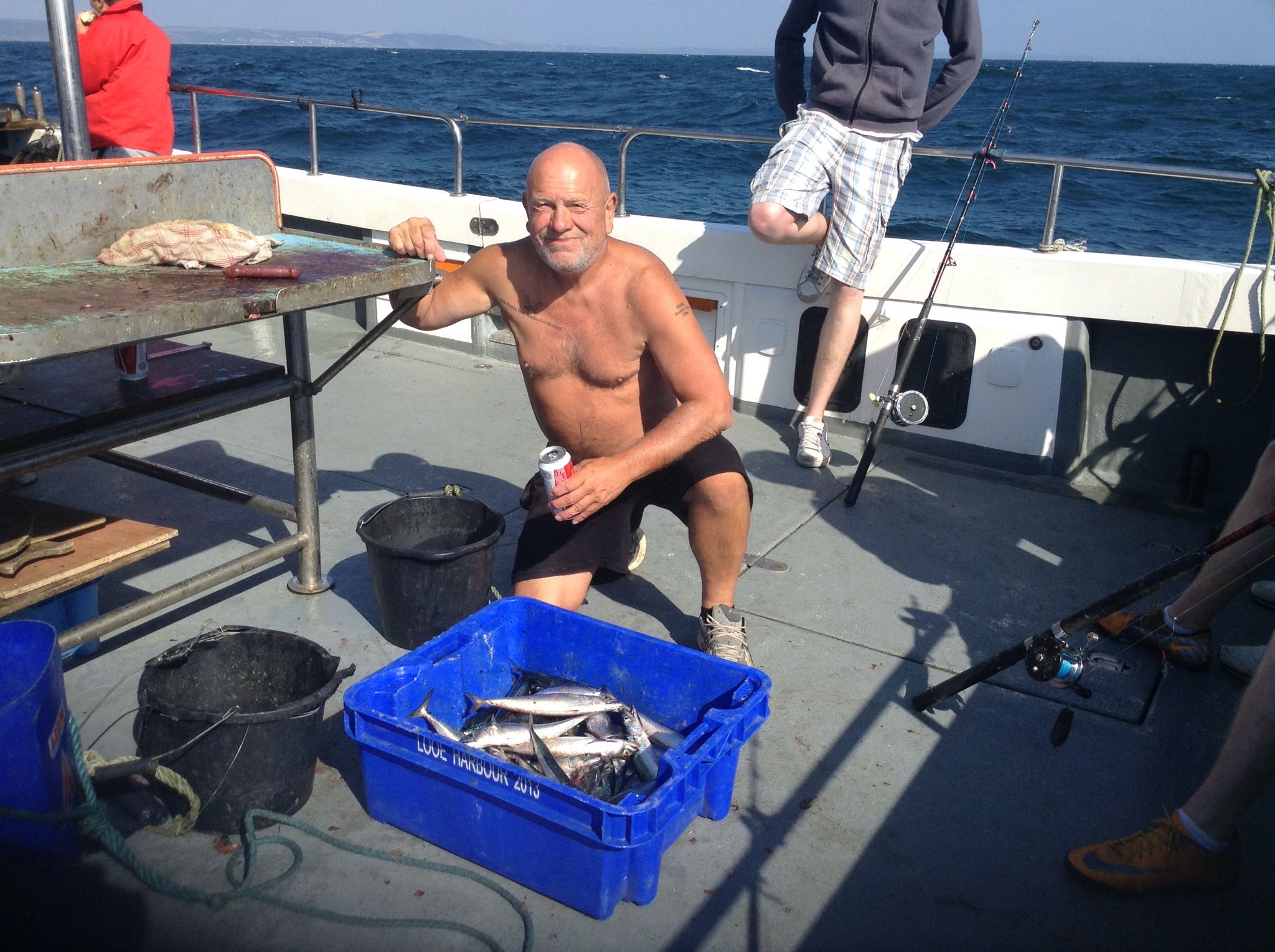 Steve, our skipper tomorrow, has a decent sized catamaran for deep sea fishing and he’s good; he’s the best I’ve been out with and Georgie and Antonia have caught some big fish off his boat, conger, pouting, whiting and mackerel. He spends April to October taking out fishing parties as many days as he can and then takes his missus to Thailand from November to March. Great life innit?