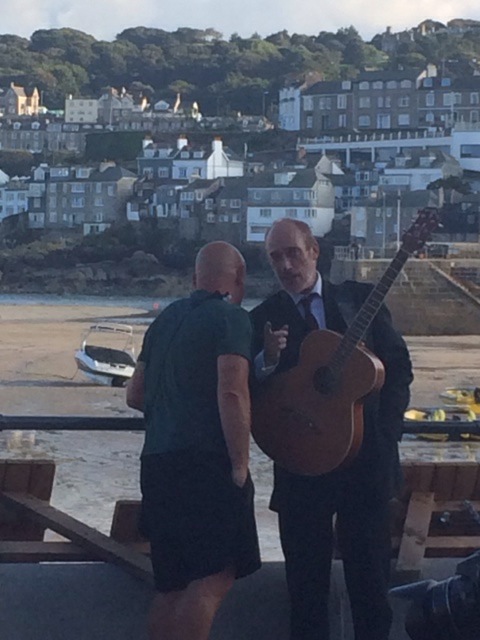 Before me and Andrew set off – Tuesday of last week – we loafed in St Ives and there were two buskers in suits on drums and guitar. I didn’t think they were loud enough so I joined them (as pictured below) and then an elderly hippy joined in too so we rocked the place with 60s songs.