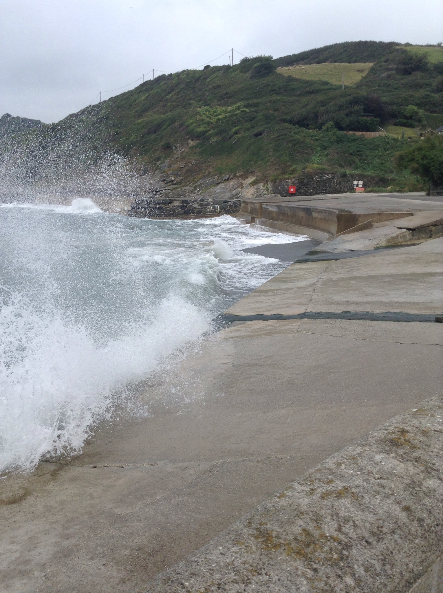Set off early yesterday and the warm wind was blowing quite strongly. At Portholland the sea was bashing against the concrete defences.