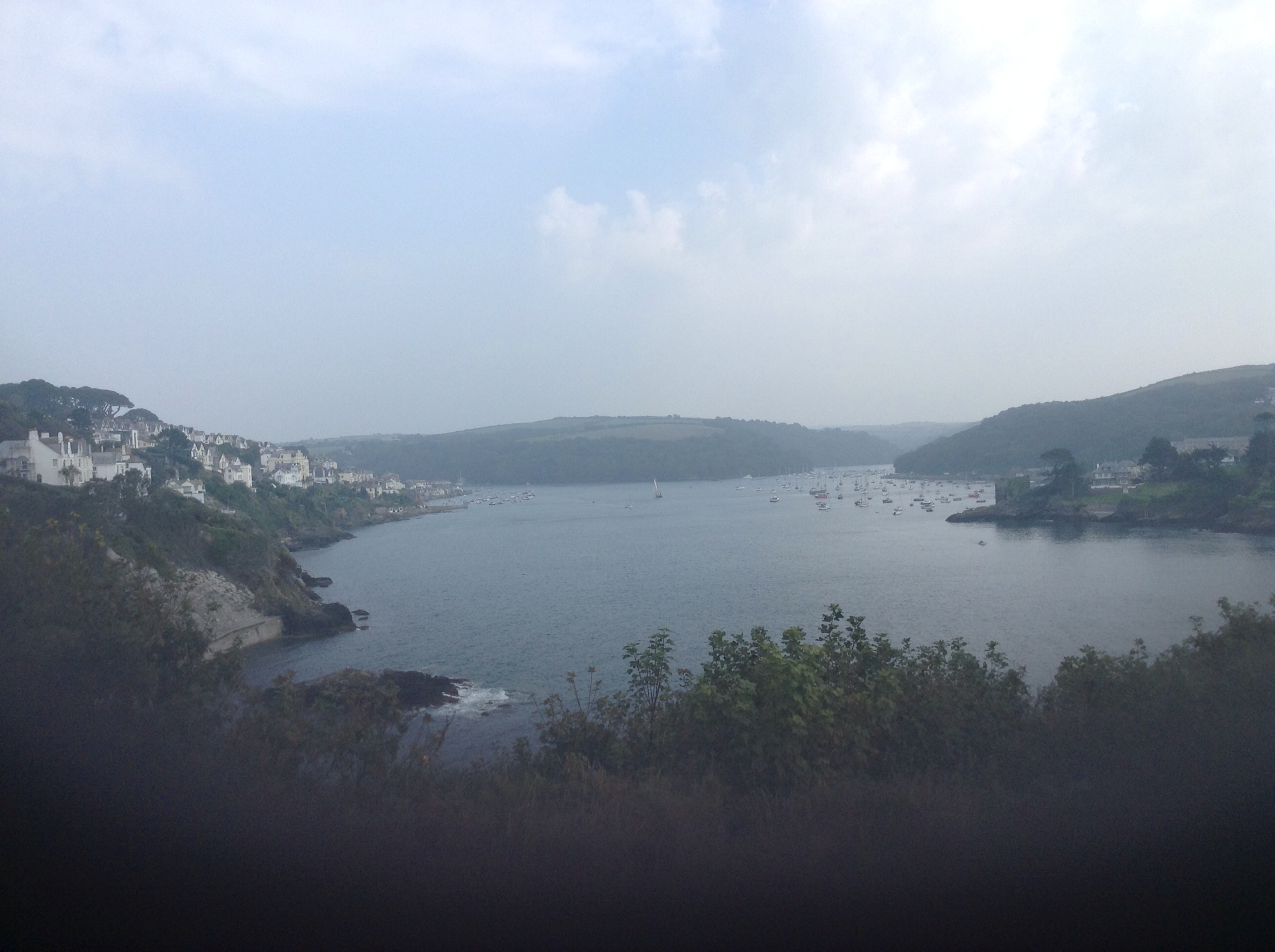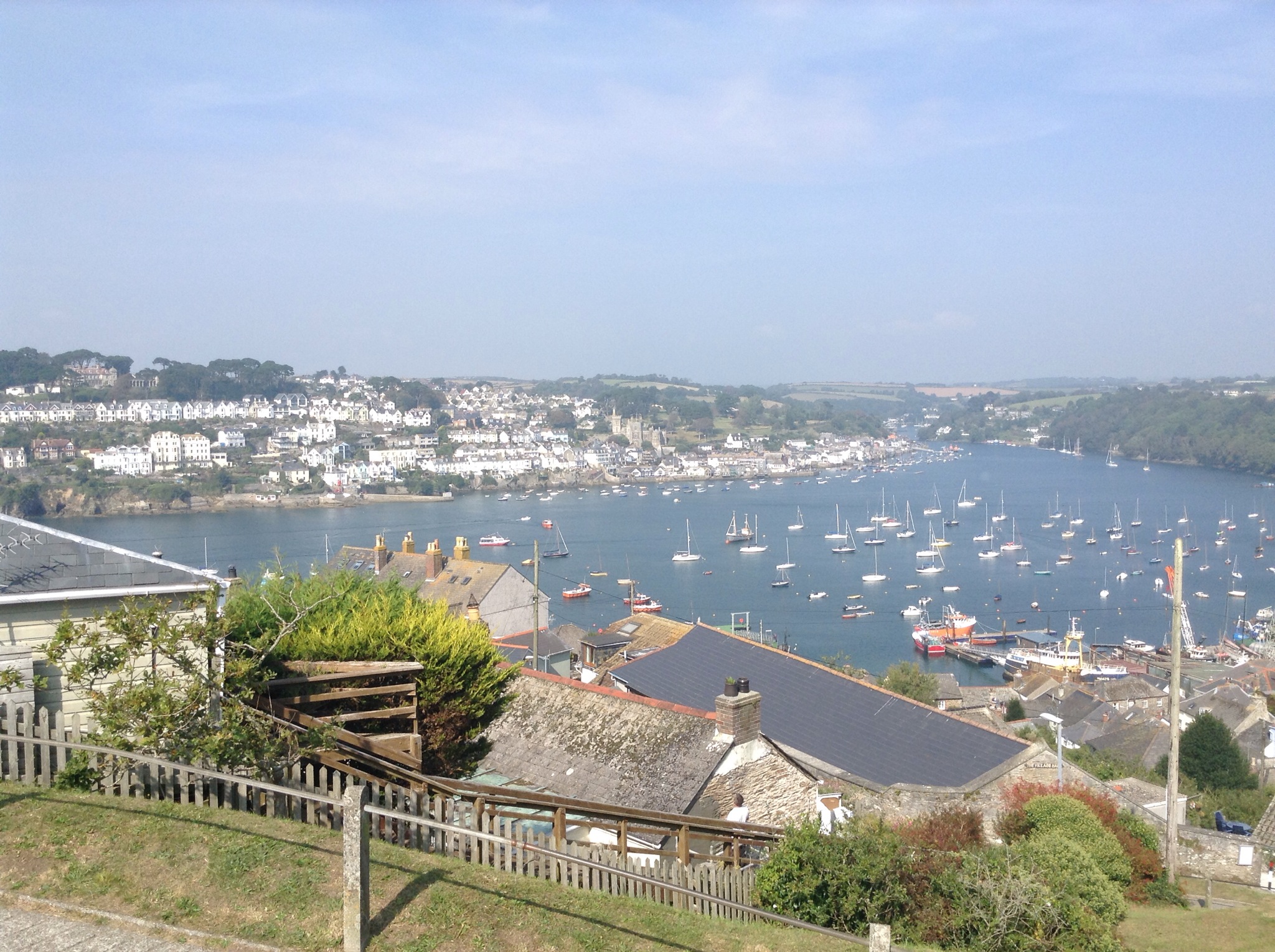 I’ve pitched up at the top of Polruan for the night. This is the view down to Fowey.