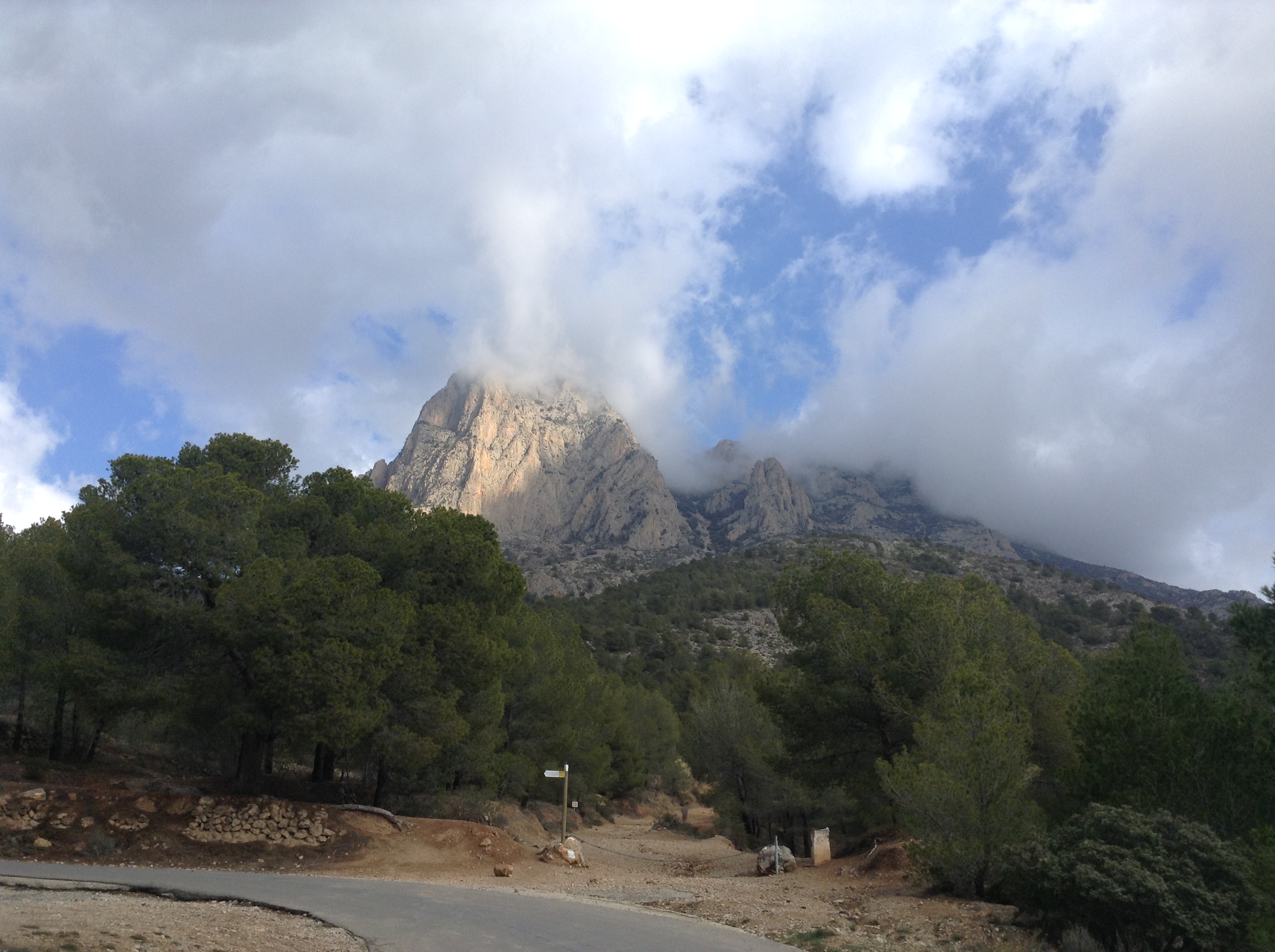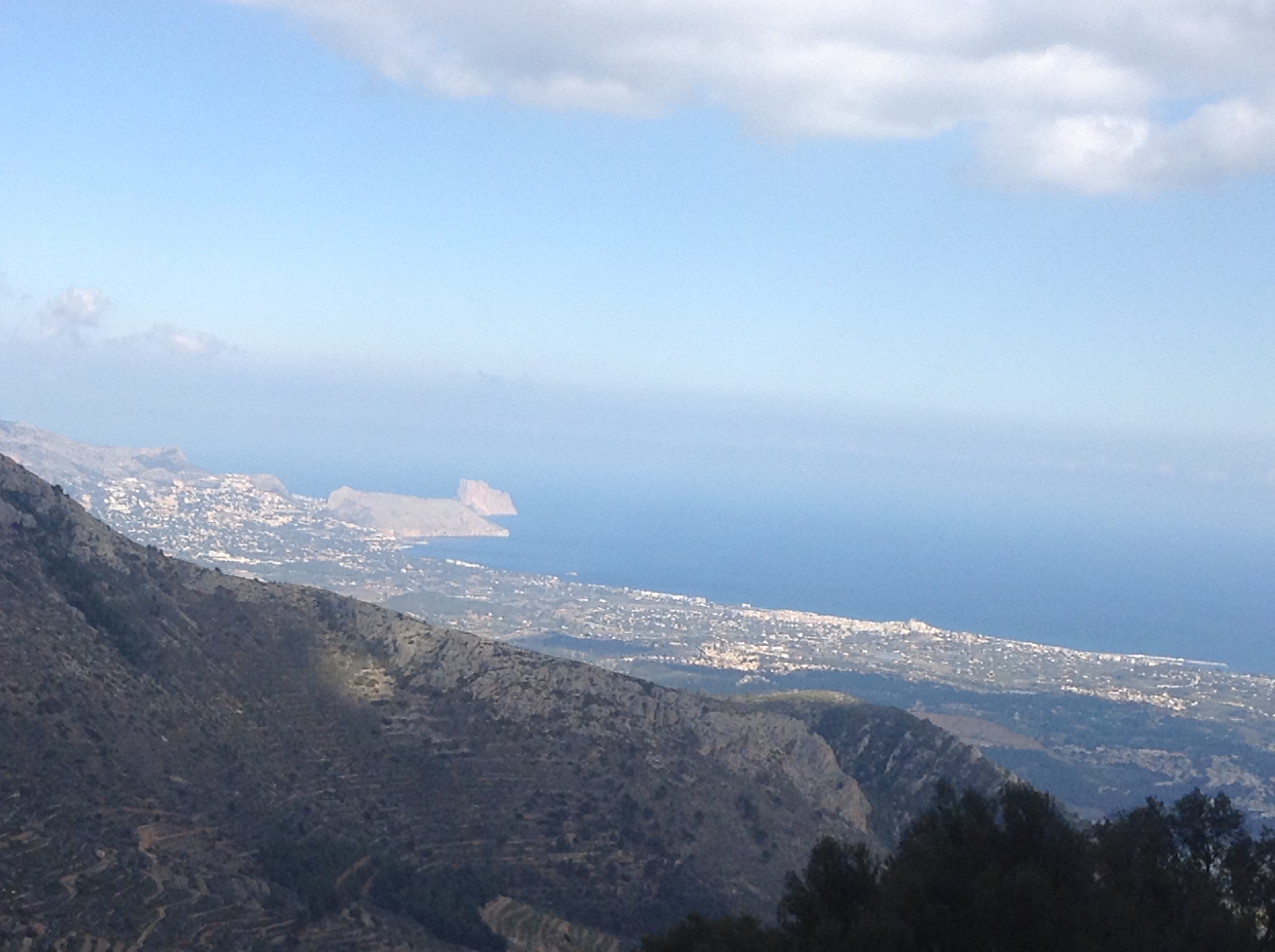 On the top of the peak to the left if you look closely you can see a chunk taken out of the top. Legend has it that Roldan, a local giant, had a lover Alda who was fated to die when the last of the sun’s rays shone on her. Roldan cut out part of the mountain so that the sun would take longer to set and give Alda a few moments longer to live. The chunk was kicked out into the Mediterranean and became the island off Benidorm which appears in my last blog. I love that story. It must be true. Only the power of love could make a bloke that strong, even if he’s a giant. It’s like women capable of lifting trucks off their children.