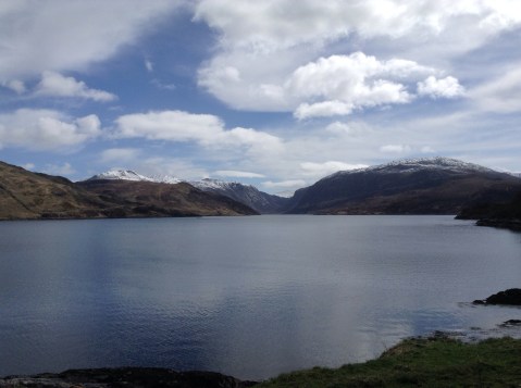 I headed south along the road to Inchnadamph, climbing up to the pass east of Cuinnaig, a magnificent snow covered range.