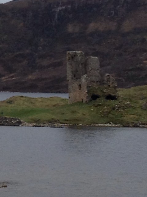 I dropped down to Loch Assynt and came across Ardvreck Castle, the historical and haunted home of the Macleod Clan. Grisly history. Can you see the ghost of the grey man in this photo? Me neither.