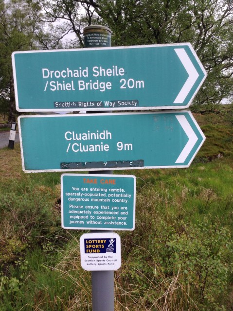 I finally got down to Loch Garry, with a laughable sign saying that I’d only come 9 miles from Claunie and that the route was potentially dangerous. It did’nt do the stag much good.