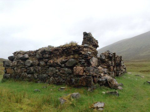 I followed a Scottish Right of Way through up to the top of a pass and down to some ruins of an ancient and small farmhouse. I expected the spectre of an old Highlander to appear on the photos: the place had that feel to it. Particularly with the skeleton of a sheep in one of the two rooms.