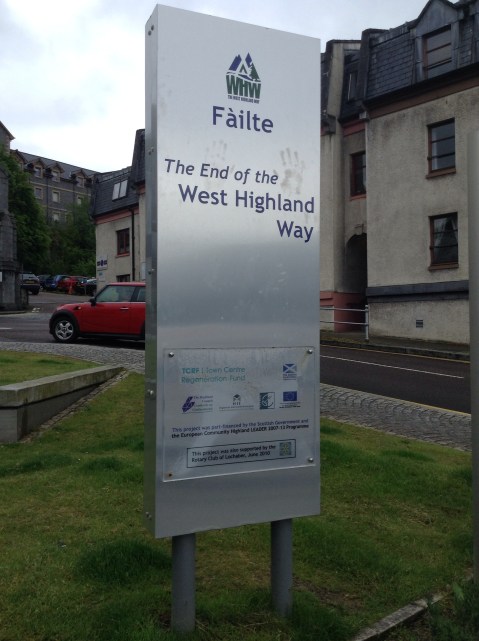 To recap I had breakfast and left the B&B yesterday as dear Elsie, the owner, had a doctor’s appointment. I wandered into town and came across the end – being the beginning for me – of the West Highland Way.