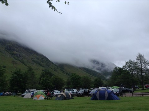 What a great night’s sleep. I fell asleep shortly after ringing ‘the wife’ as they say on Tipping Point (not that I watch it), round about 8pm or summat. I listened to the Incredible String Band doing ‘The Half-Remarkable Question’. Just cop it on you tube or summat and you’ll share the joy of a song vying for greatest ISB song of all time, with ‘The Iron Stone’ and dozens of others. They do something to me. I then put on the Killers. As it’s on my iPad it switches off after the 4 classics I’ve got on there and I’m asleep before the end of ‘When You Were Young’. But I hadn’t done my teeth or had a wee so I woke up at 1am and got out of the tent. OMG!! This means Oh My God. It was that brief hour of darkness round here at this time of year. The clouds had lifted and the black mass of Ben Nevis was revealed to me. Not by an outline against the Universe; the cloud was lifted but not evaporated so it was black outside. But by a fabulous array of lights which were making their way up or down the mountain. It was magical and I wished I could watch for a long time but it was now cold. I weed and brushed my teeth, in two completely separate processes and went back to bed, after once again admiring the magnificent display of AA powered torches snaking up and down the highest mountain in the UK.