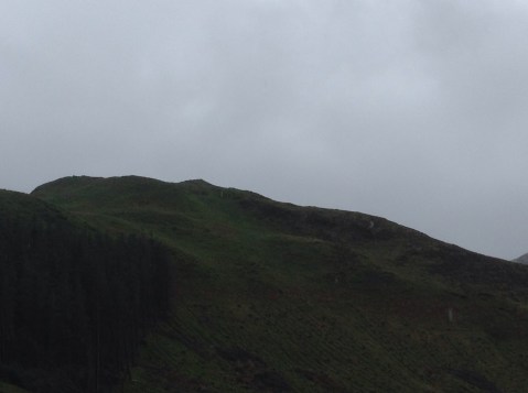 The Way rises up and passes through passes. The first one culminates in a high peak of an ancient fort, Dun Deardail. It’s up there somewhere.
