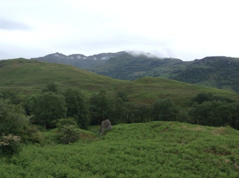 The hills were attracting a few fluffy clouds as I set off, heading along Loch Lomond south to the village of Balmaha, to then climb Conic Hill which sticks up a thousand feet above the loch, and on to Drymen where I would spend the night at the Hawthorns guest house. A quick 15 mile dap.
