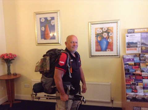 In the end I got a few miles further and pitched my tent (you heard) by the side of the footpath. Wilson got a sick note from his mum that he couldn’t make it this time; signed “My Mum”. Good job. When I got up in the morning my body heat on the ground – no lilo – had brought a swarm of midges to life. Bar Stewards. If they’re too small to bite then they get in your eyes.