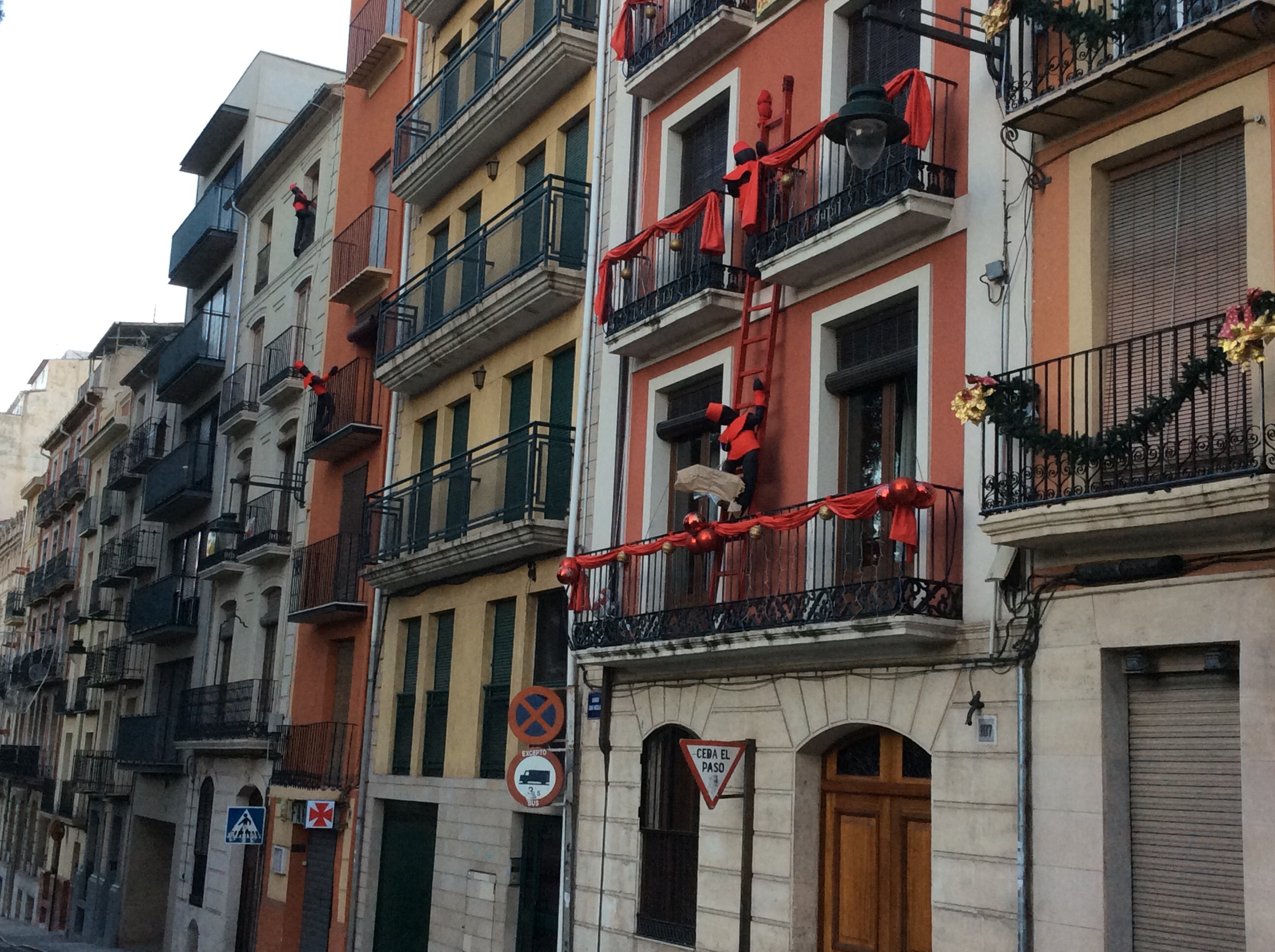 Walking down through town there are lots of Christmas mannequins of black men climbing up balconies to deliver presents.