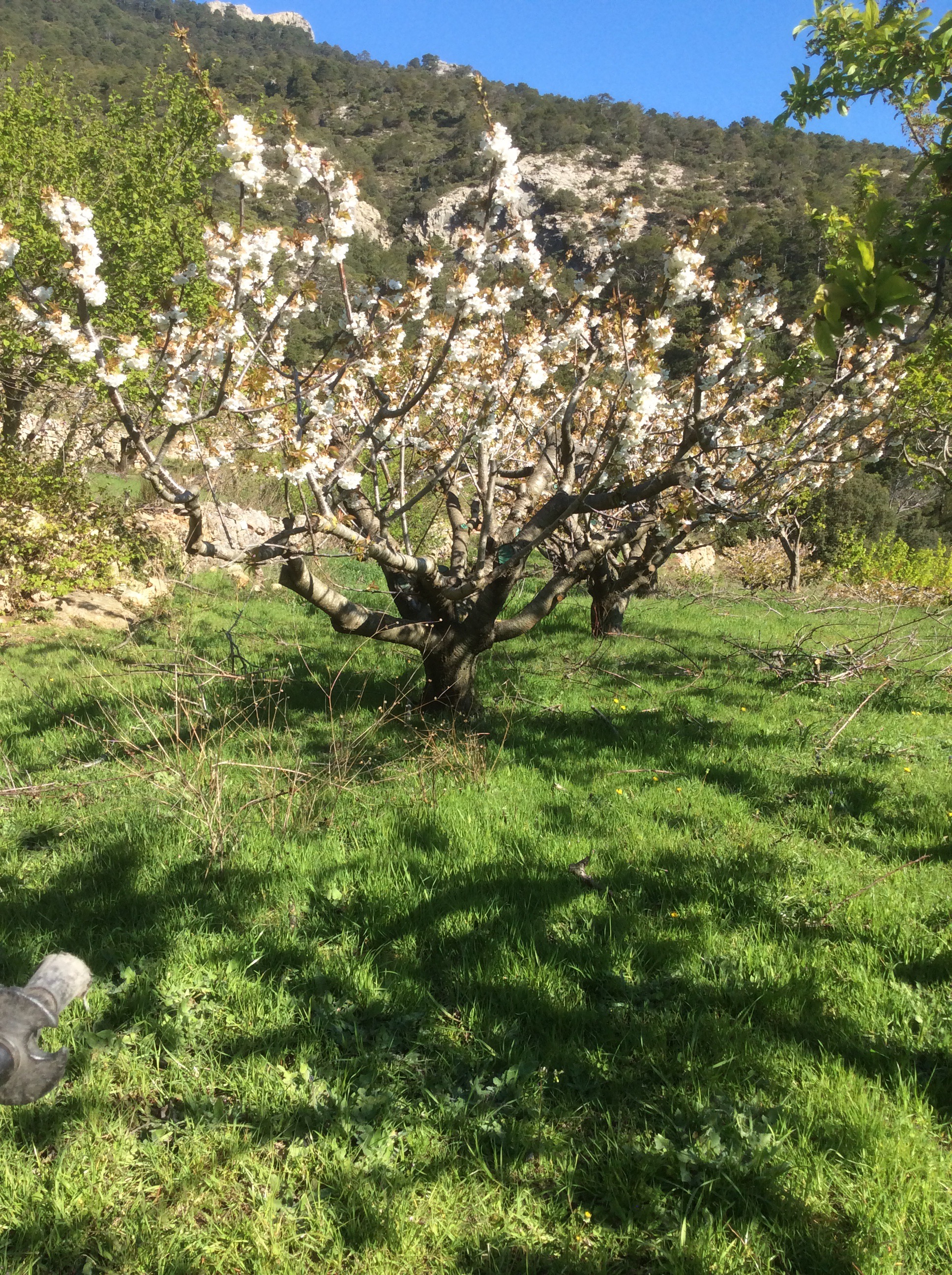 This route led me up to a farm, which like all buildings in the mountains, was uninhabited. But the crops were recently maintained so it wasn’t deserted. At this altitude the almonds weren’t developing, they were still in bloom. A good couple of months behind the valley.
