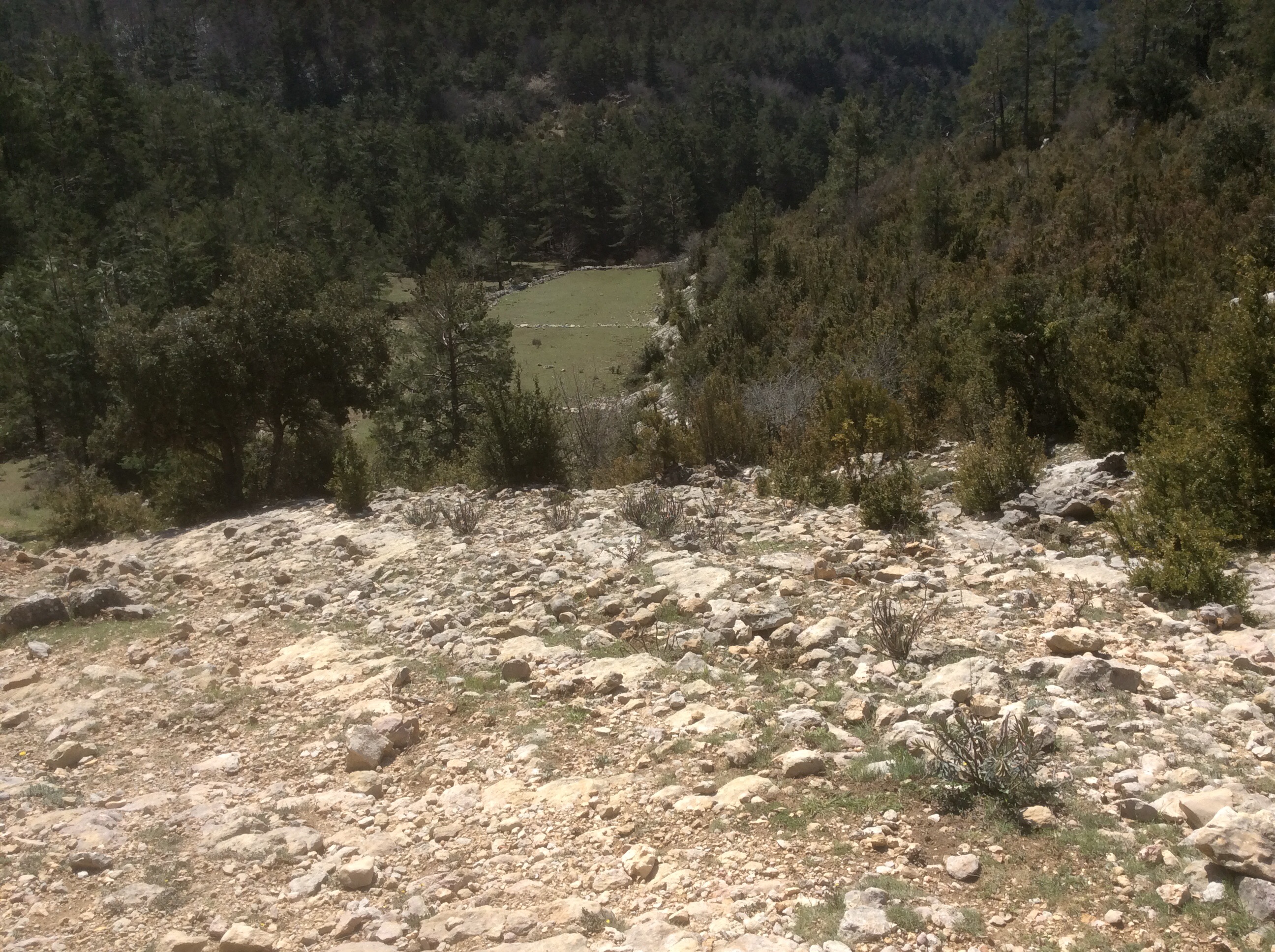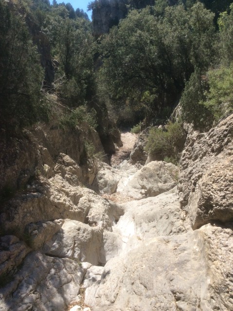 There was a track off to my right which was signposted Cascade, and the sound of running water, most unusual in this barren limestone terrain. I resisted the urge to trap down to the waterfall but the river caught up with the GR7 further down the valley.