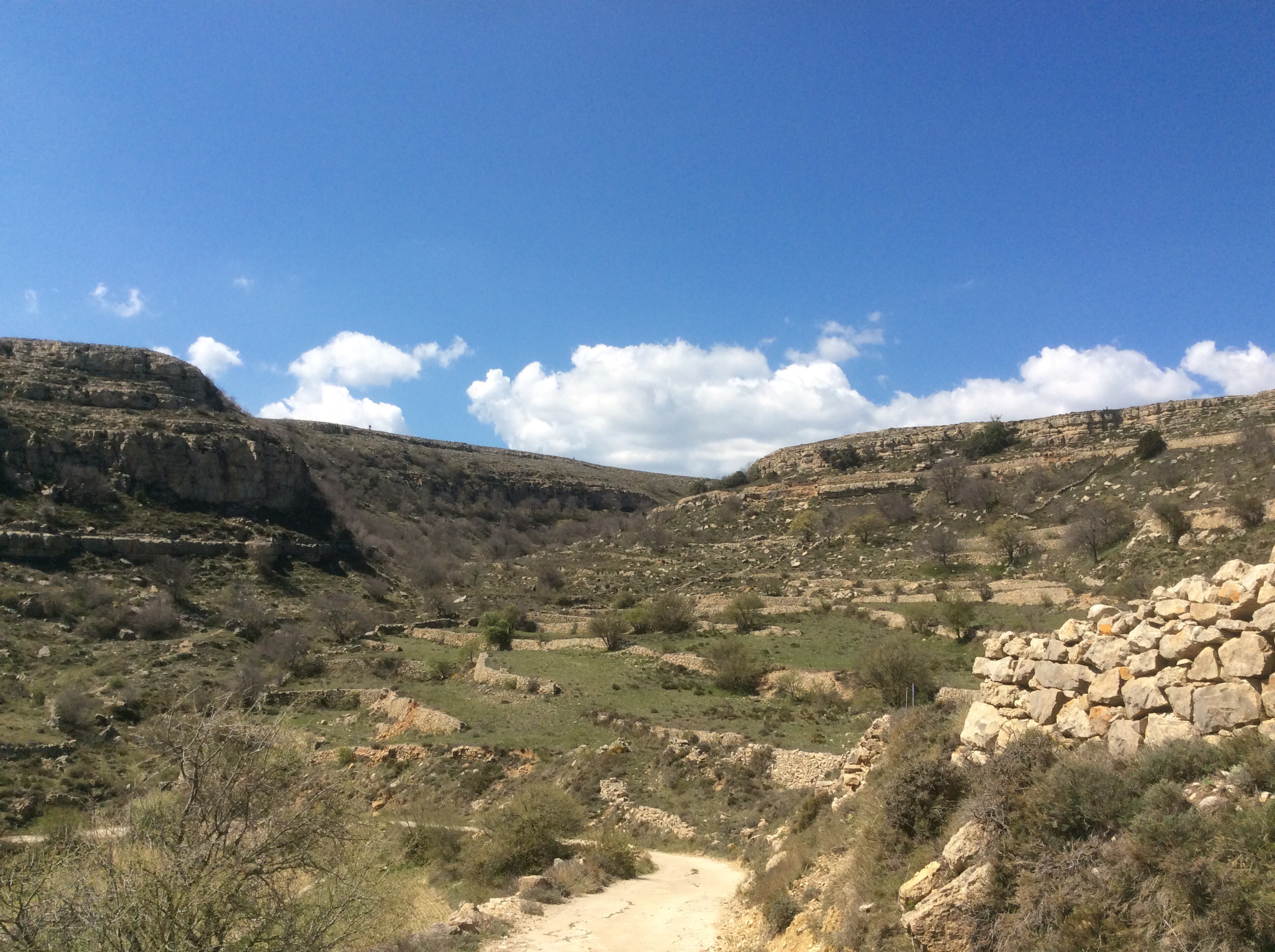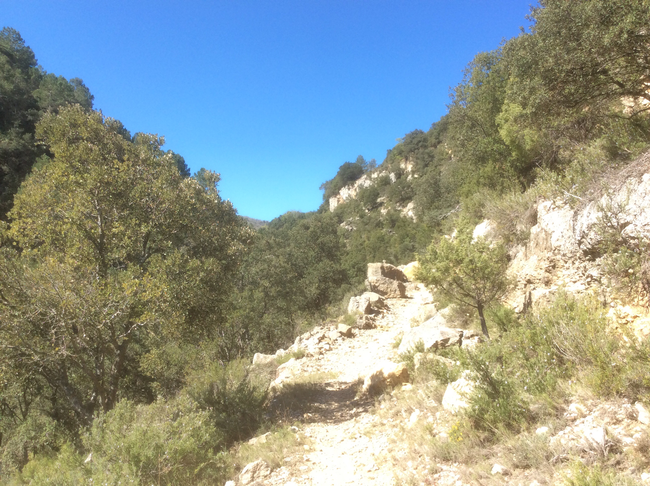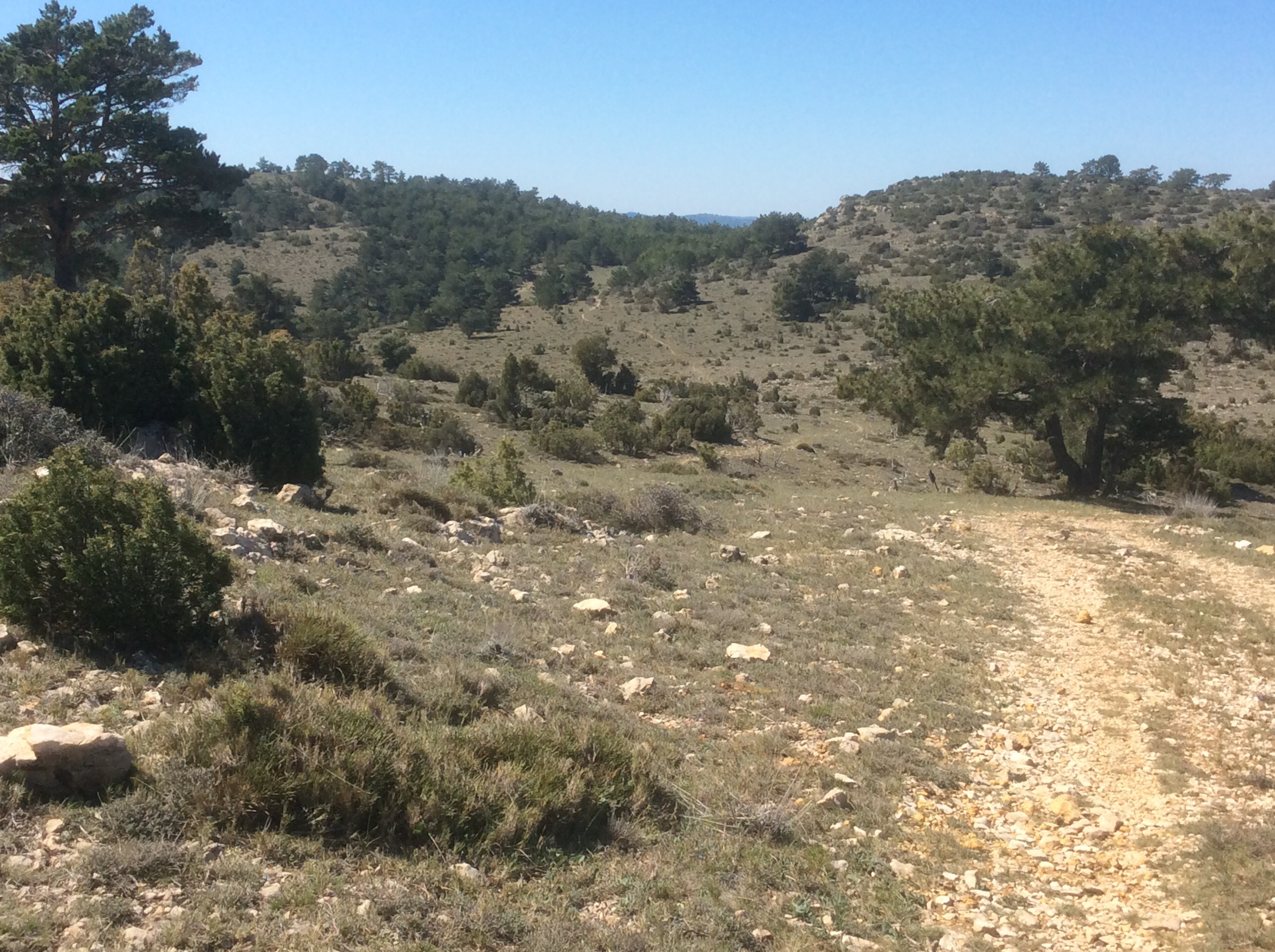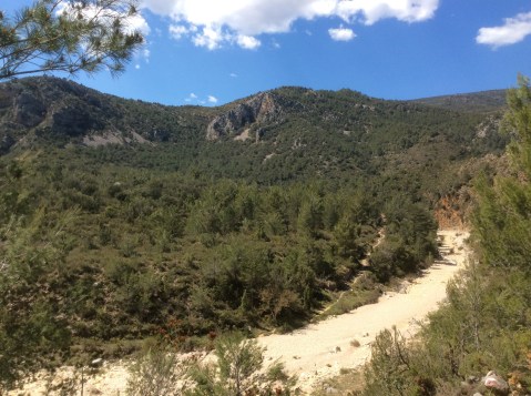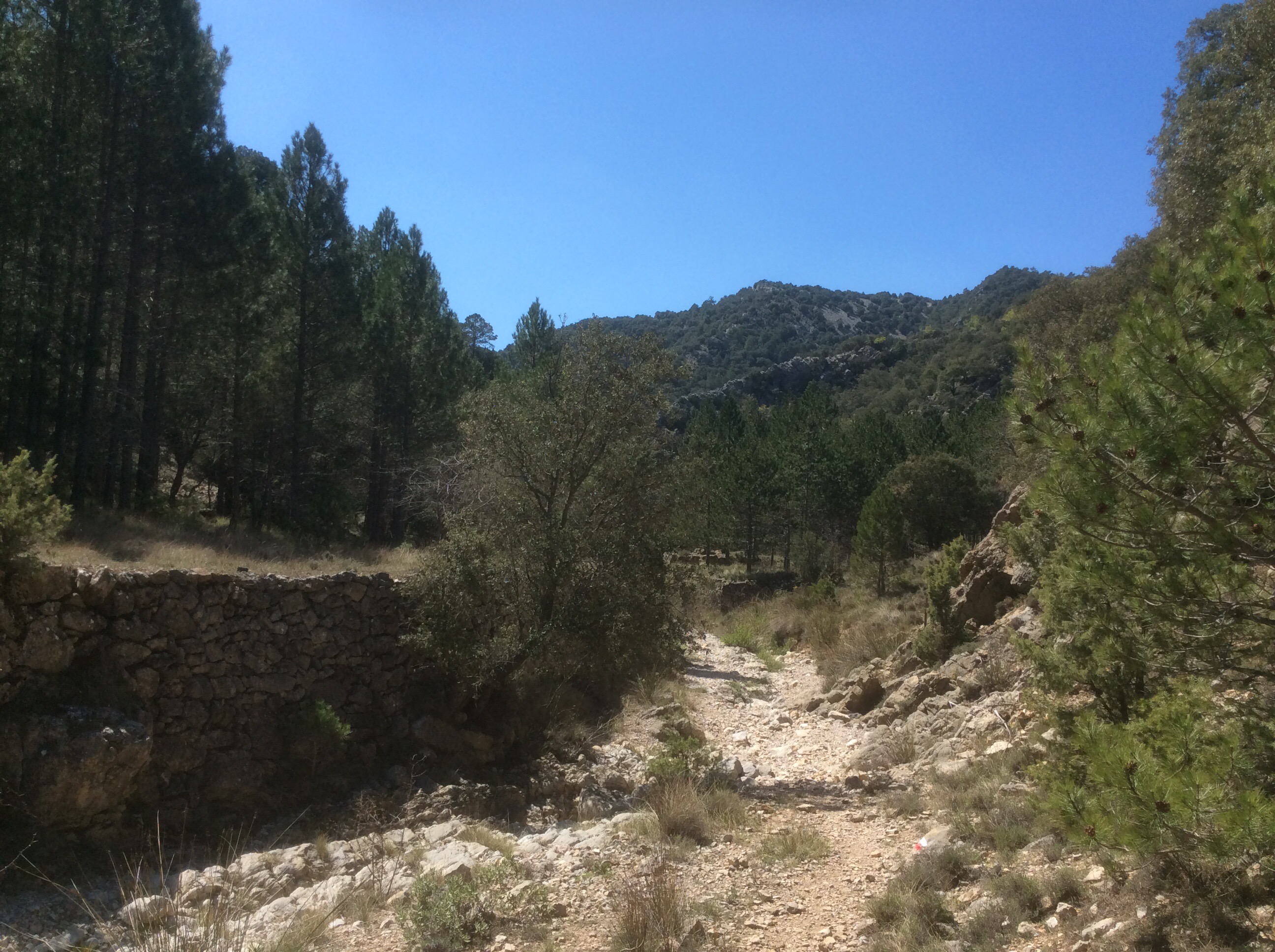 The path wound up away from El Boixar up a dry valley (they mostly are) and at the top it crossed a road and levelled out.