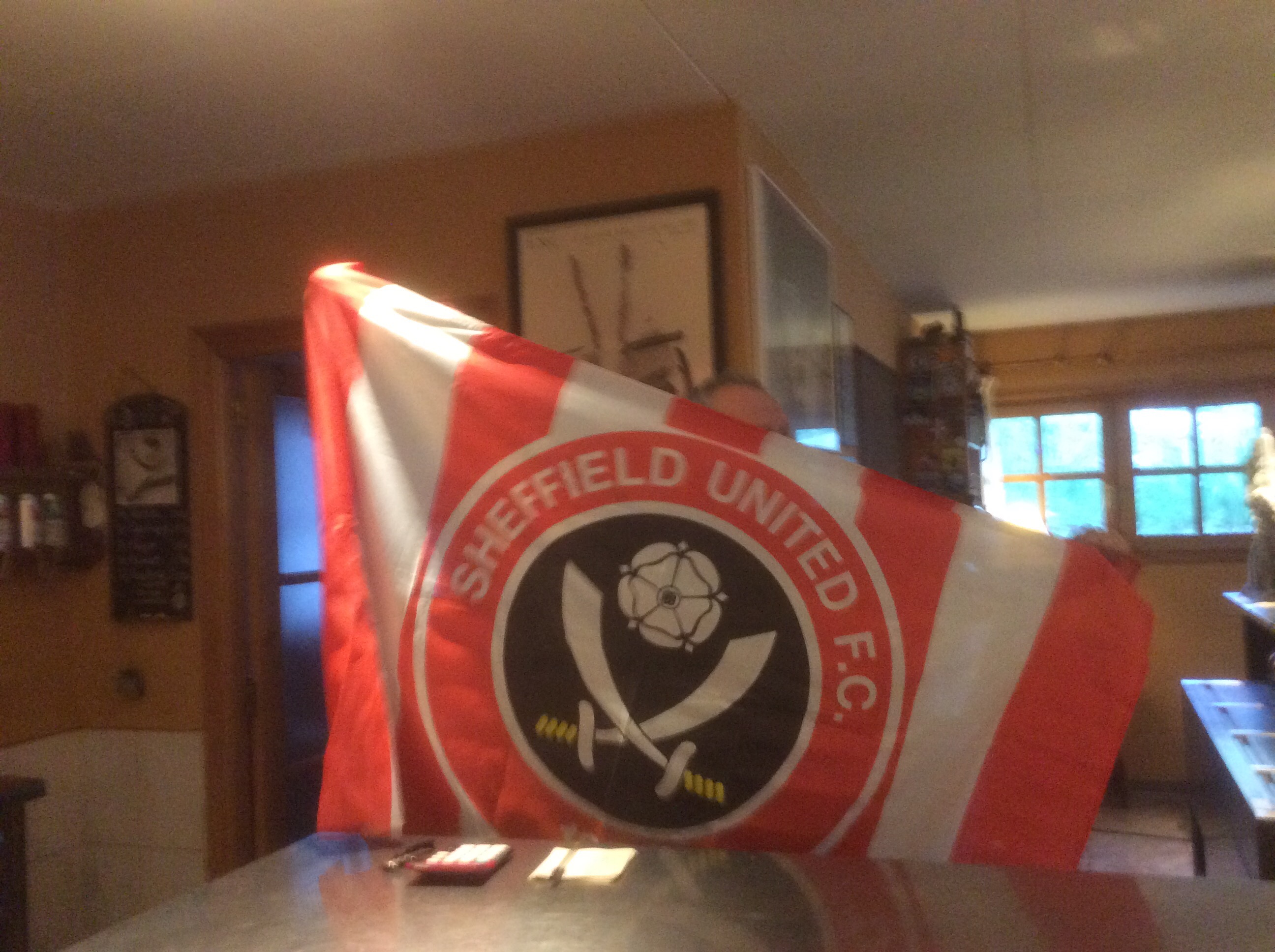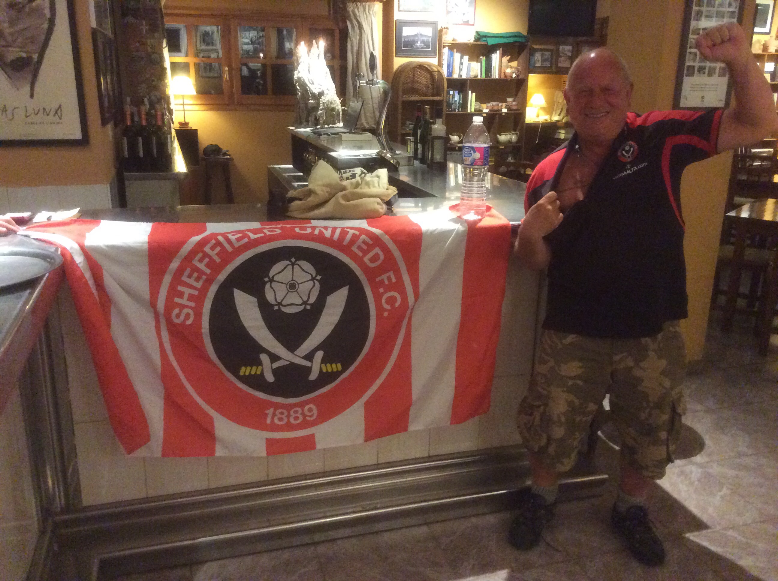I am middle-aged, I am middle-aged. To the rhythm of ‘We are going up, we are going up’ as sung in Hostal Carbonera last Saturday evening by me, the landlady (who didn’t speak English) and her partner. I let them hold my Blades flag.