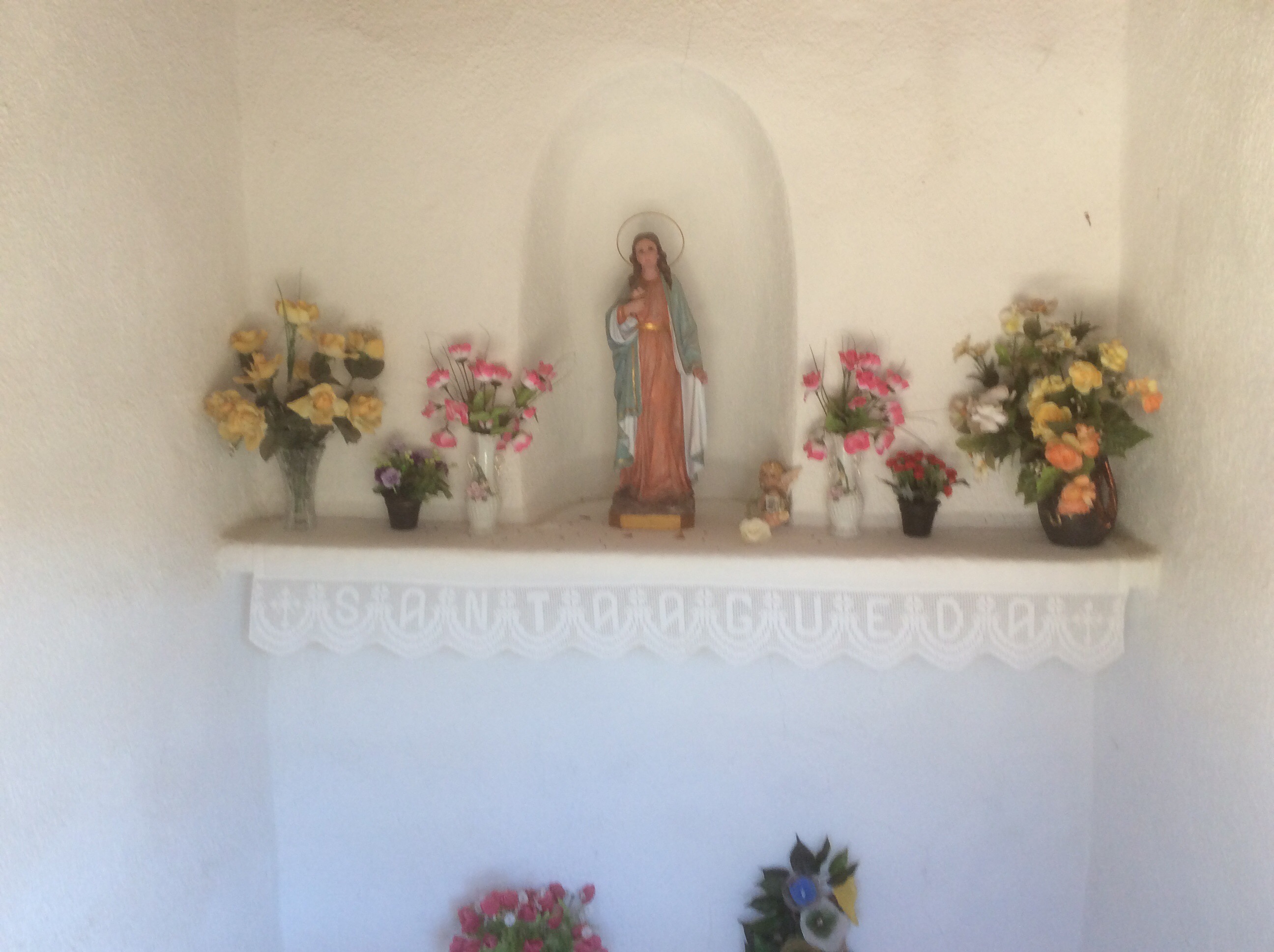 Not far out of the village, on the footpath, was a shrine to a Madonna (being an obsolete term for an Italian lady), Santa Agueda. I love this devotion by people. It’s peaceful, graceful and uplifting. I just can’t share in the organised bit.