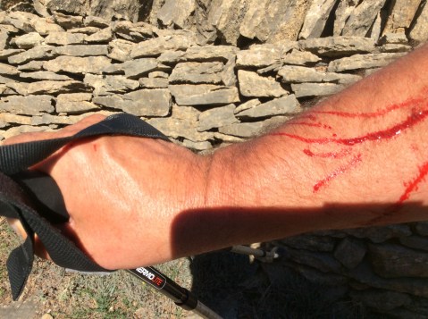 I’m not sure that I’m going to get anything but clear, hot sun this trip but although it sucks my strength and burns my body I wouldn’t swap it for snow. And mercifully it seems like I’ve left the free roaming cattle behind. And looking forward to the route, only 16 miles today but tough climbing and rough walking. The route is on this map.