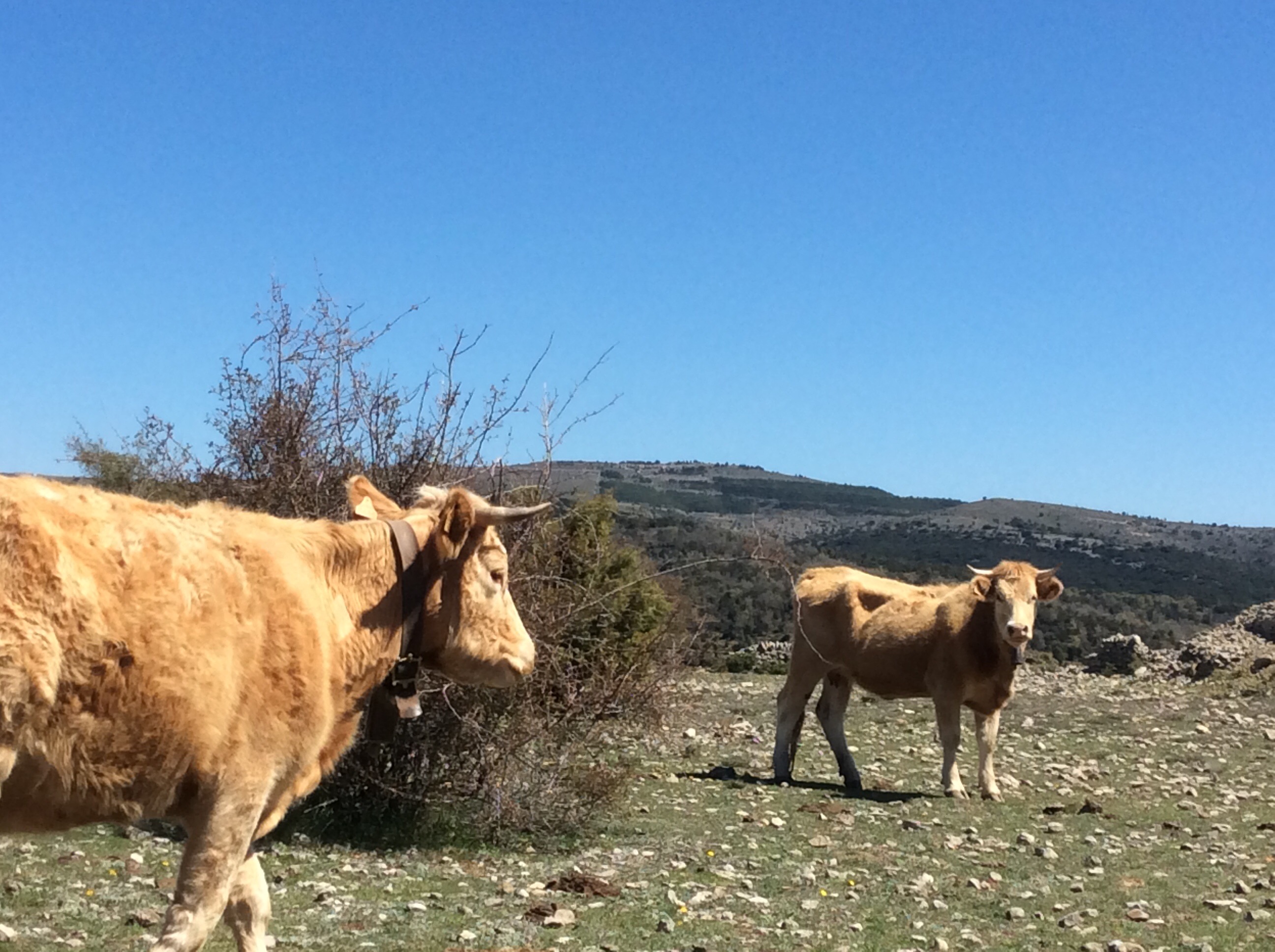 I love the silence that’s only cut through by songbirds, woodpeckers blasting away and the odd cuckoo. And occasionally by cattle with bells round their necks. My sense of smell has largely buggered off somewhere over the years but walking across the open grassland I love the aroma of wild thyme and rosemary crushed under my boots.