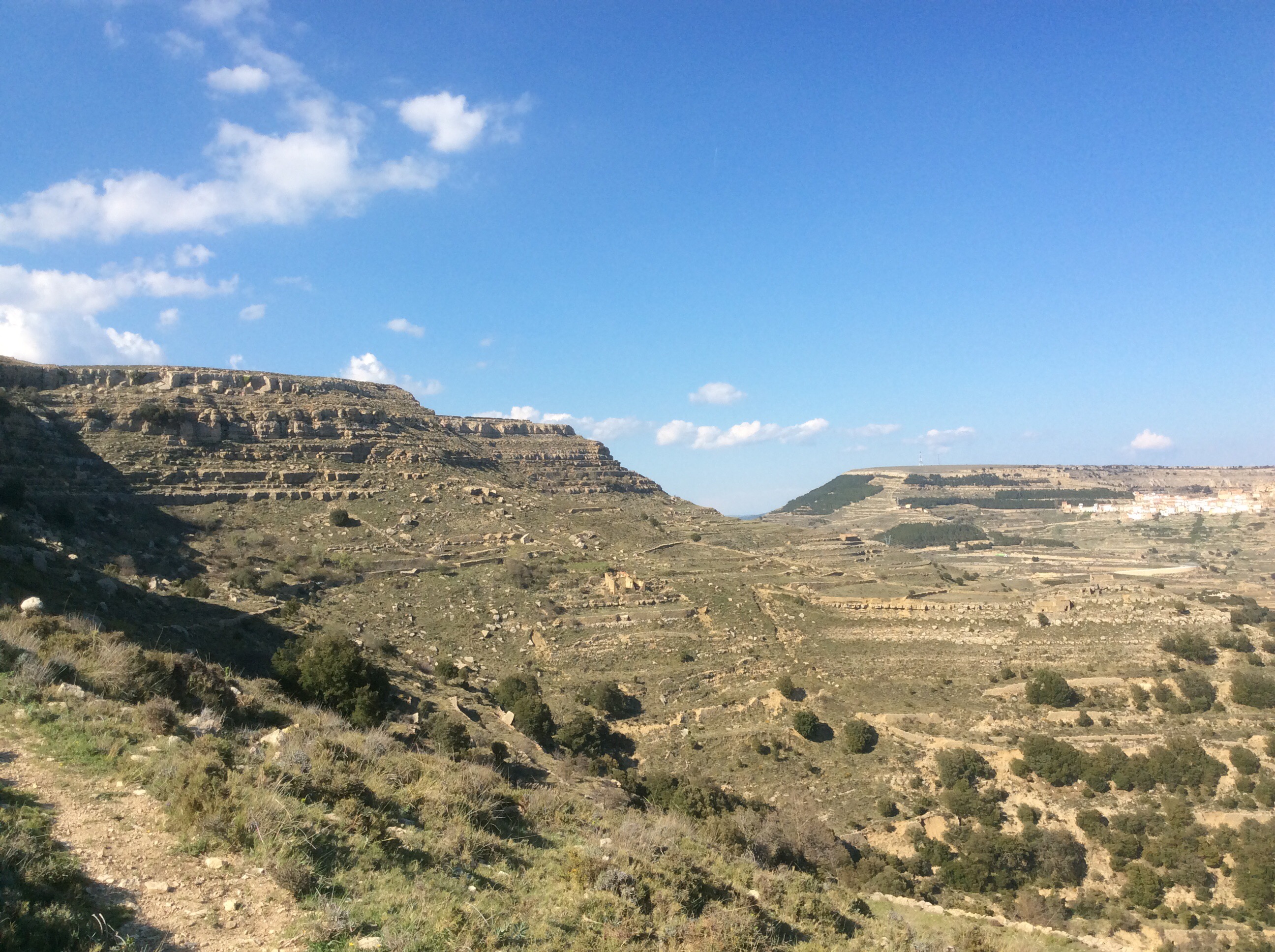I soon connected with the GR7 this morning and got underway. The first section to Culla rose up a hill straight away and Ares del Maestrat was on the far horizon looking back.