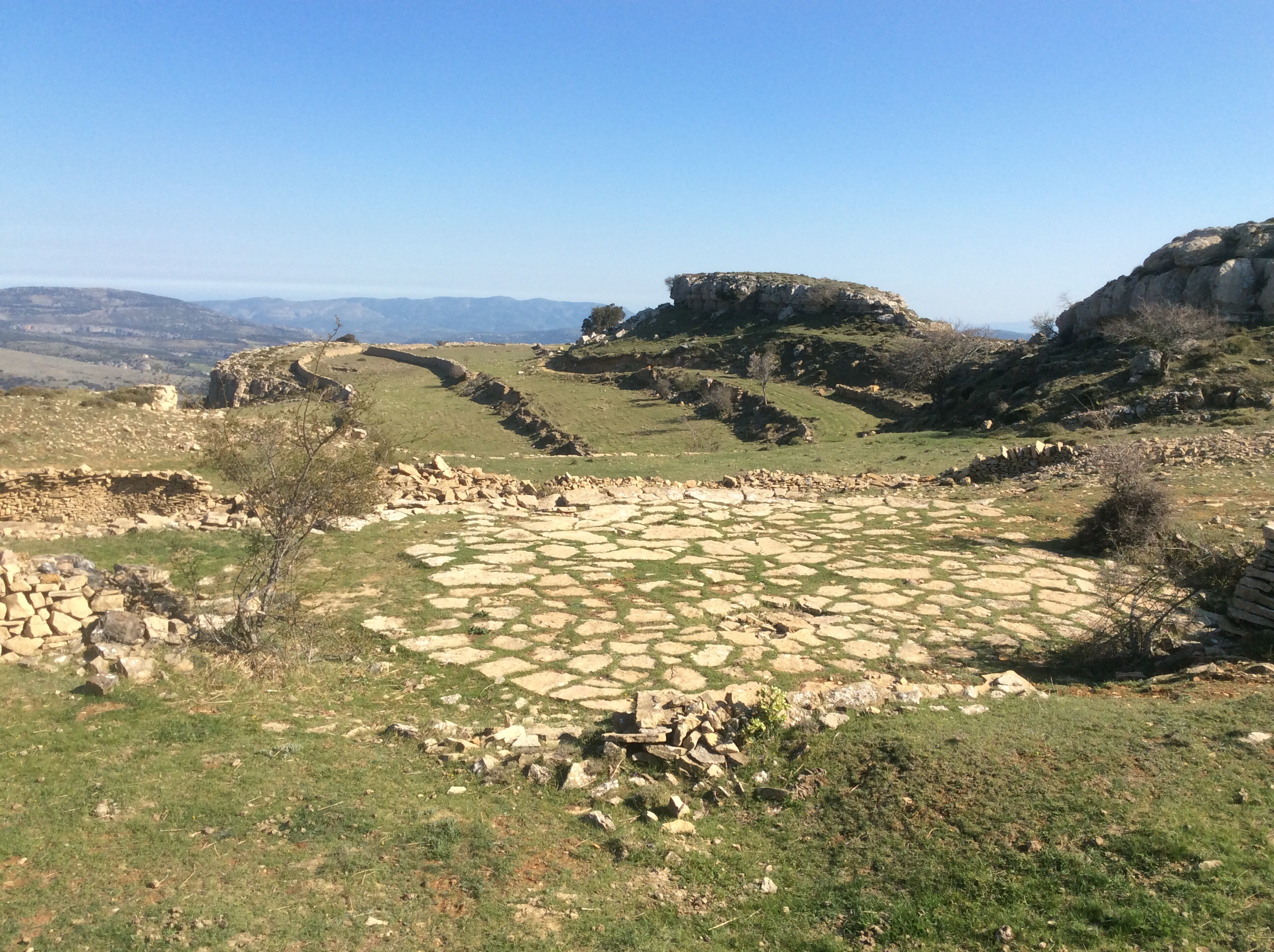 The terraces were broad on the top of the mesa and there was a circular stone floor. I’d seen these before in Andalusia, at this height in mountains where cereal crops were grown in Roman times. The corn was flailed on this ‘threshing floor’ to separate the wheat from the chaff.