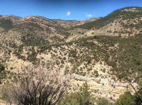 I’m a day behind on my original mind’s eye schedule. It’s Santa Semana week in Spain and places are filling up whilst services reduce for Easter. Bejis, where I’m heading, is a long way from Alicante, where I’m flying back from next Sunday morning. To get from Bejis to the airport last time, in January, took a hike, a thumbed lift, a bus, a train and a bus. I just need to find out what’s working or not on Easter Saturday and Sunday. I’d thought of roadwalking from here to Bejis as I could hammer it in 4 days, rather than the GR7. But the GR7 footpath is so beautiful I don’t care if I fall short and have to come back again to finish it off.