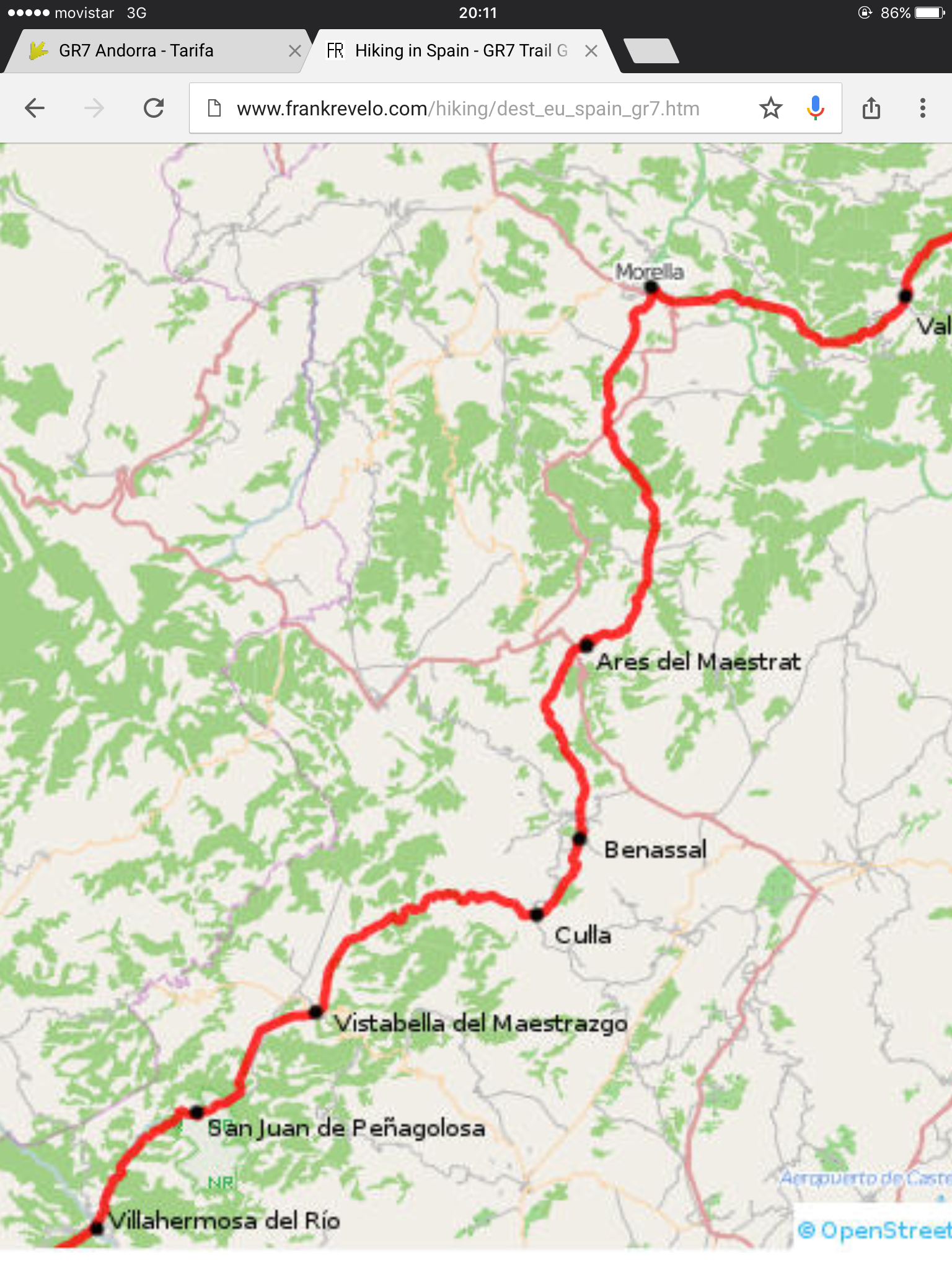 Today was a simple up valley and down dale 13 mile hike to Morella. This is my route for the next few days. Tomorrow is a long slog of a stretch from Moralla to Benasal. I’ll enjoy the rest today and sweat it out tomorrow.