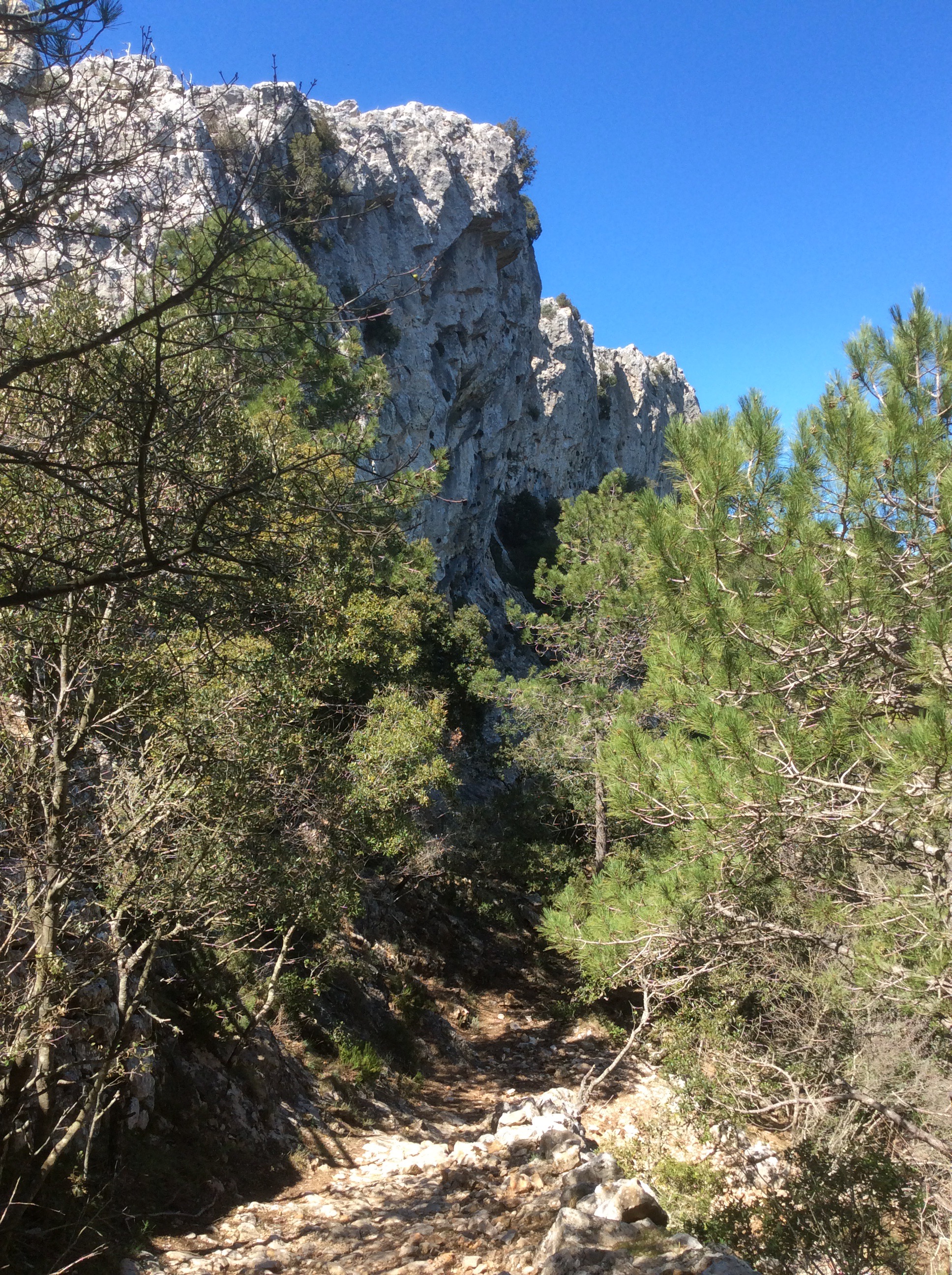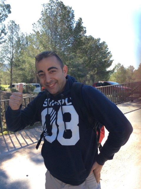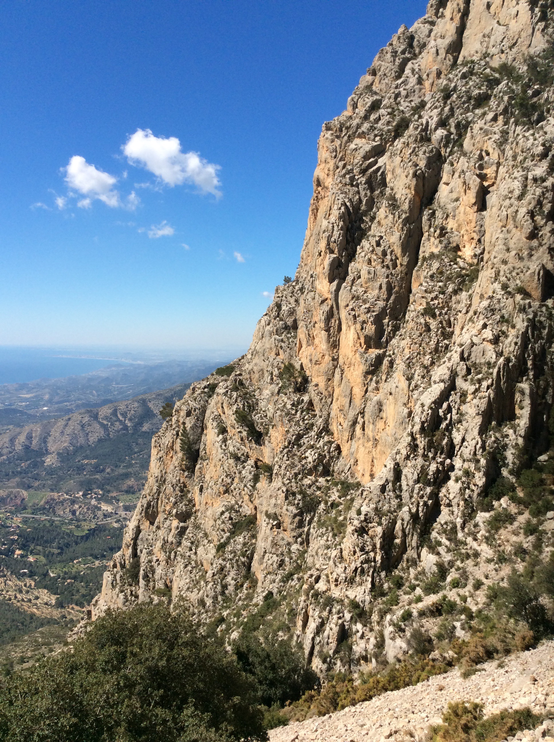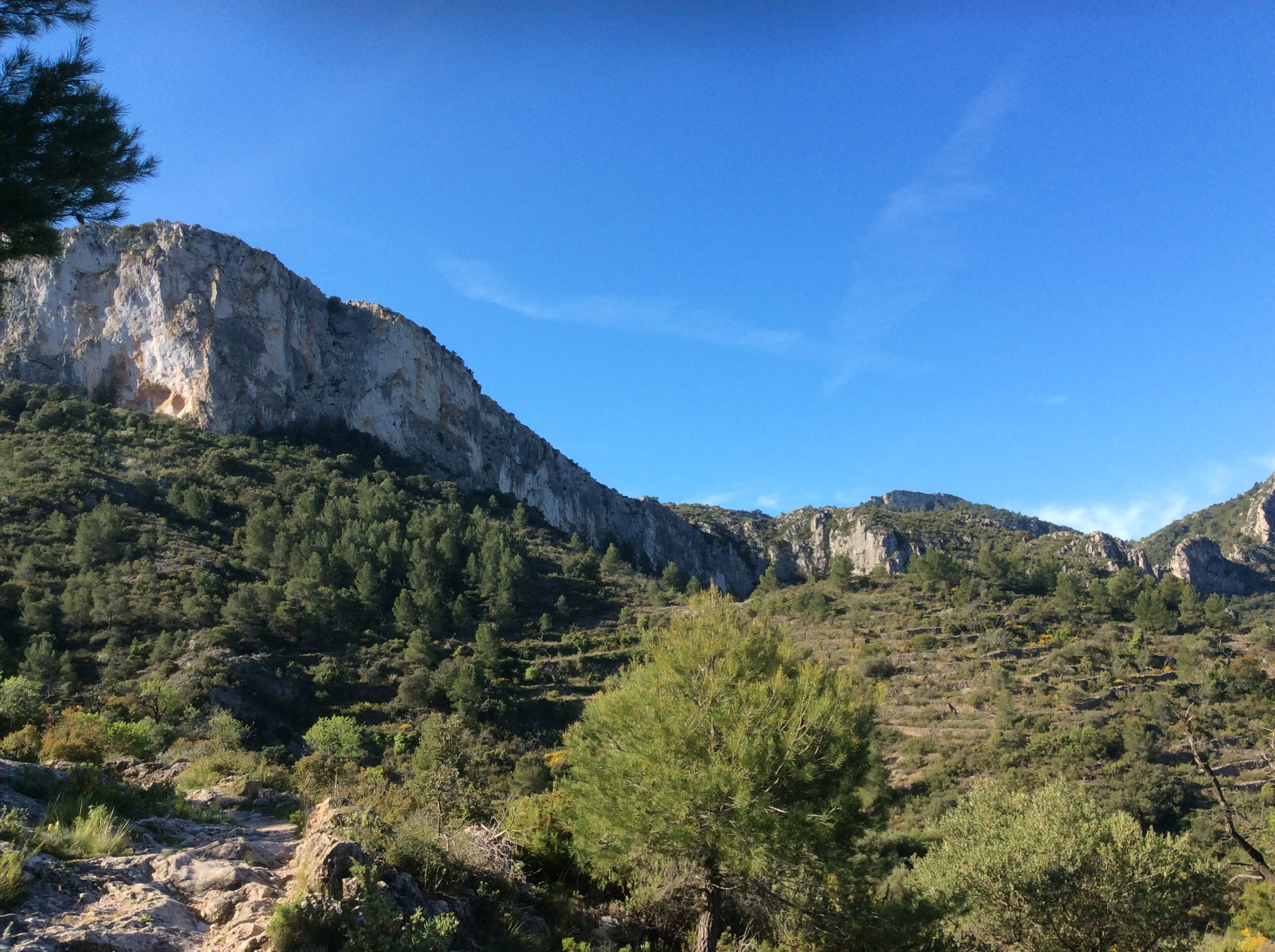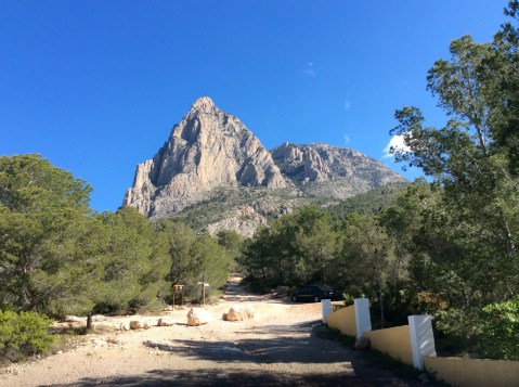 Parking near the freshwater springs at Moli at the foot of the mountain the first climb I went up with Javi, a right good lad who works at the hotel that we stay at, the Aparthotel Terralta. Puig Campana looms above you soon after setting off. And the scree canyon that provides the ‘scramble track’ cuts up its middle.