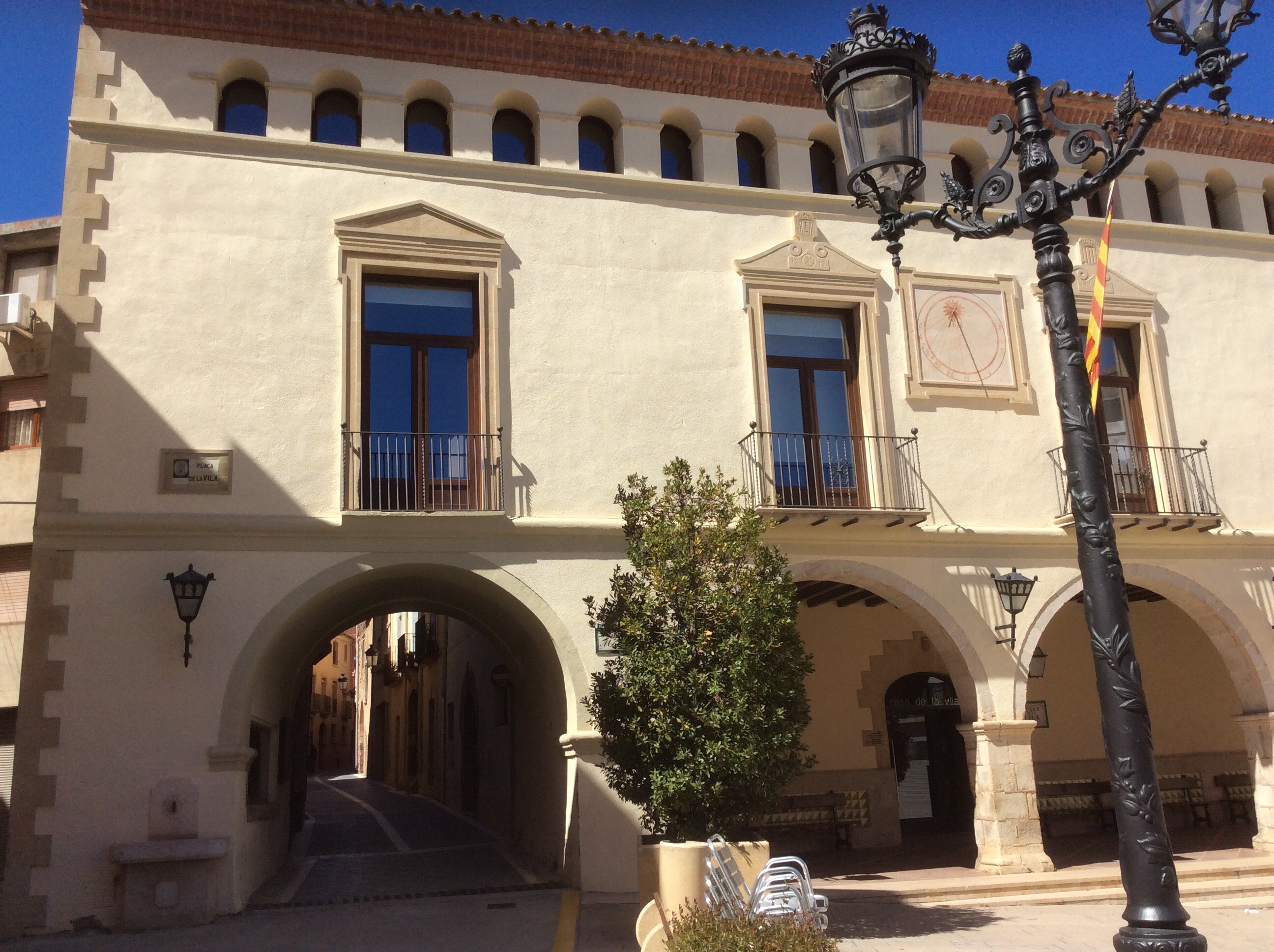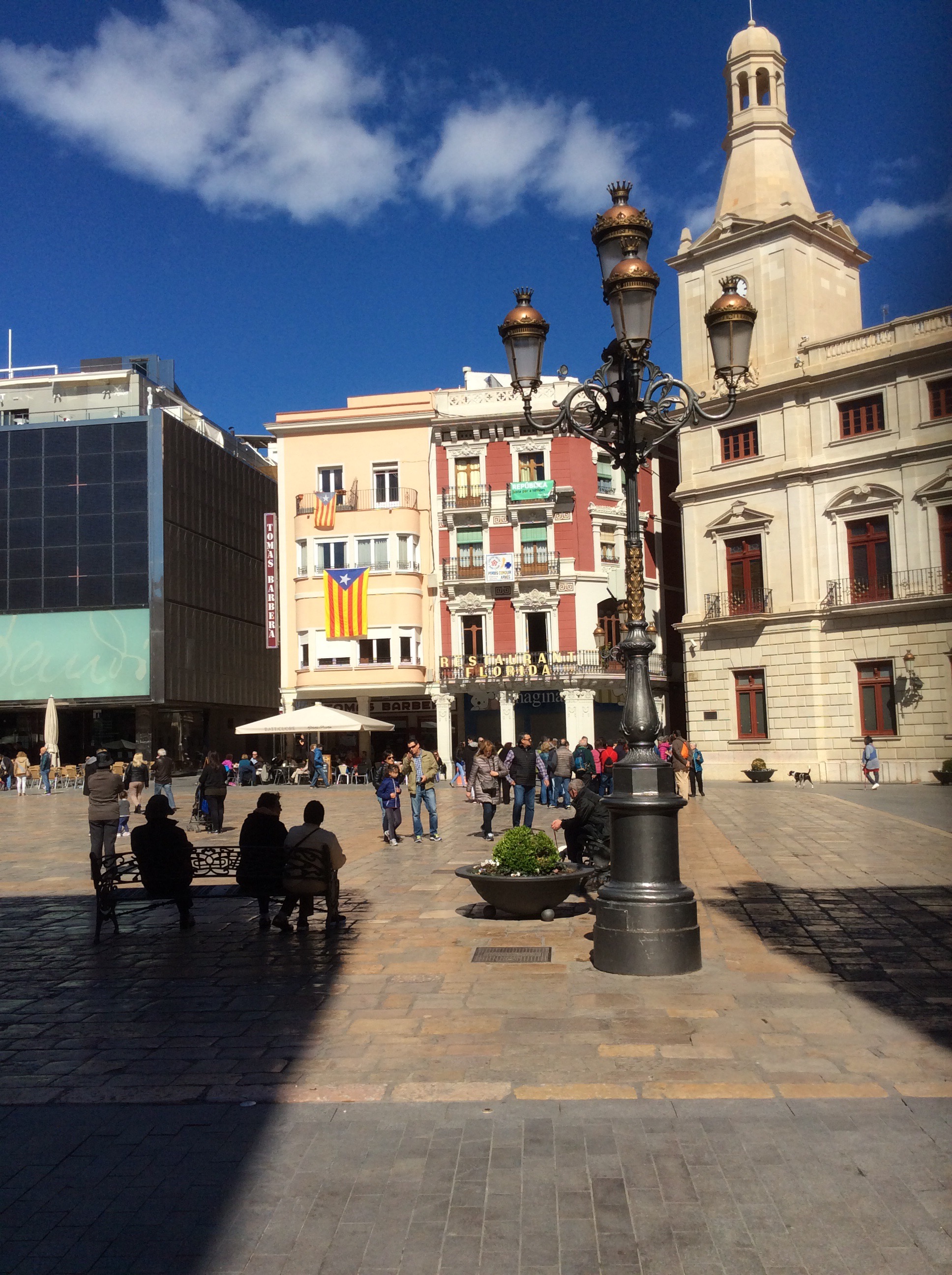 Today was a road walk of about 12 miles from Reus Airport to a hostel in Montroig. The black marked route is the GR7 part of tomorrow’s walk. Reus is lacking character but there are a few corners in the centre that are attractive.