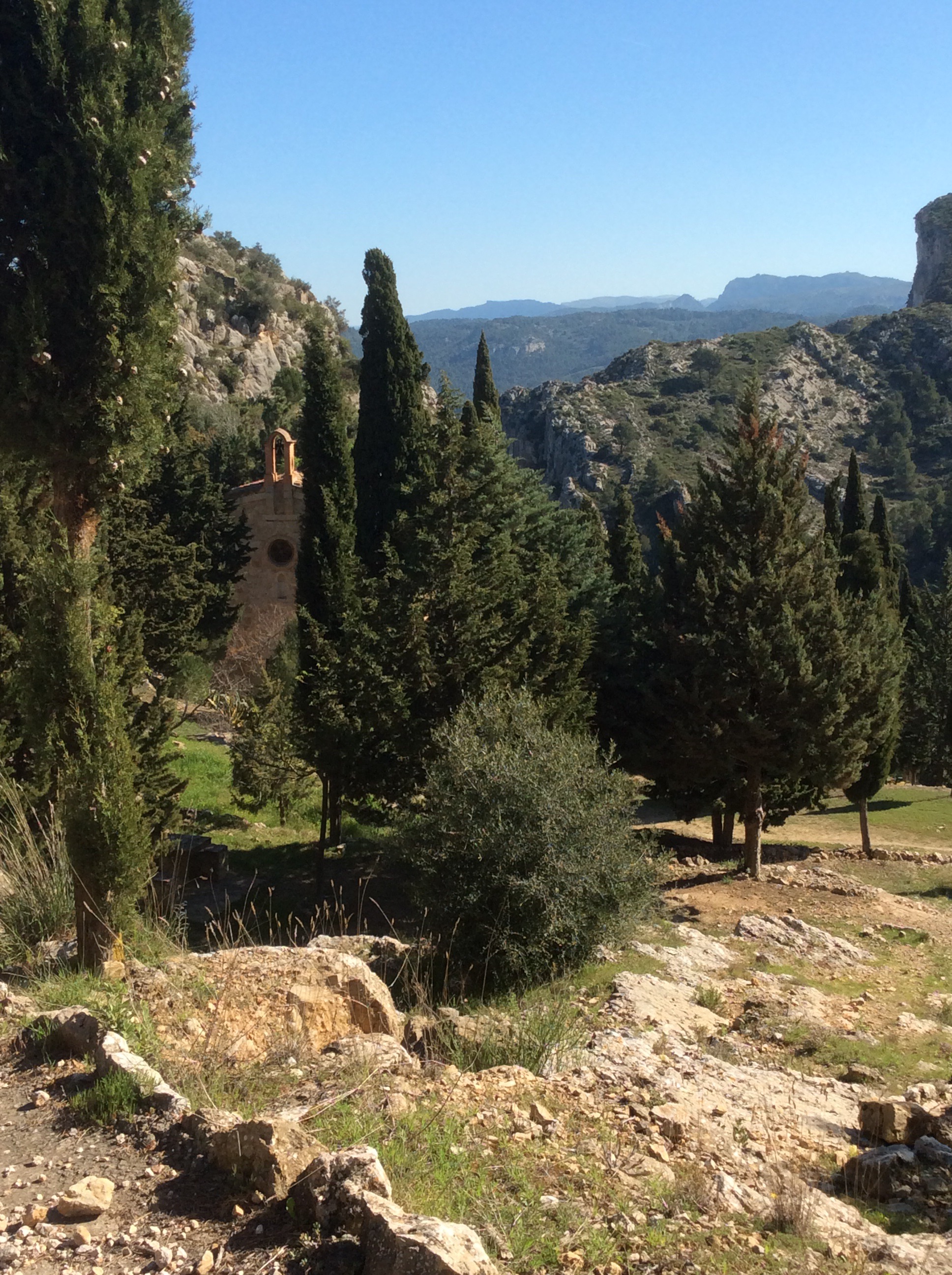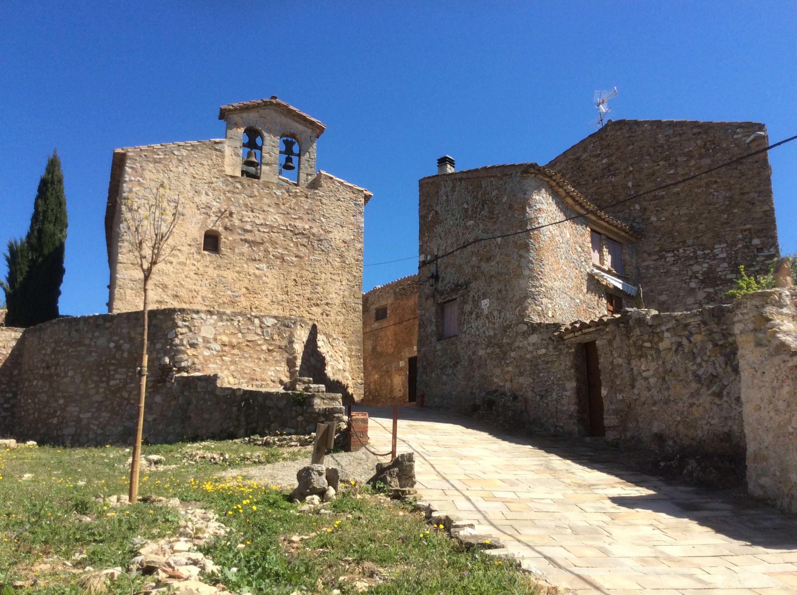 The wind had dropped and I realised I was running lower on water than I’d reckoned. The village of Llaberia arrived and I thought maybe I’d top up. The church bell struck two o’clock so I was happy life was there. It wasn’t. The village is completely weekend homes, renovated and well preserved but empty. Even the church had a mechanical bell and no-one ringing it.