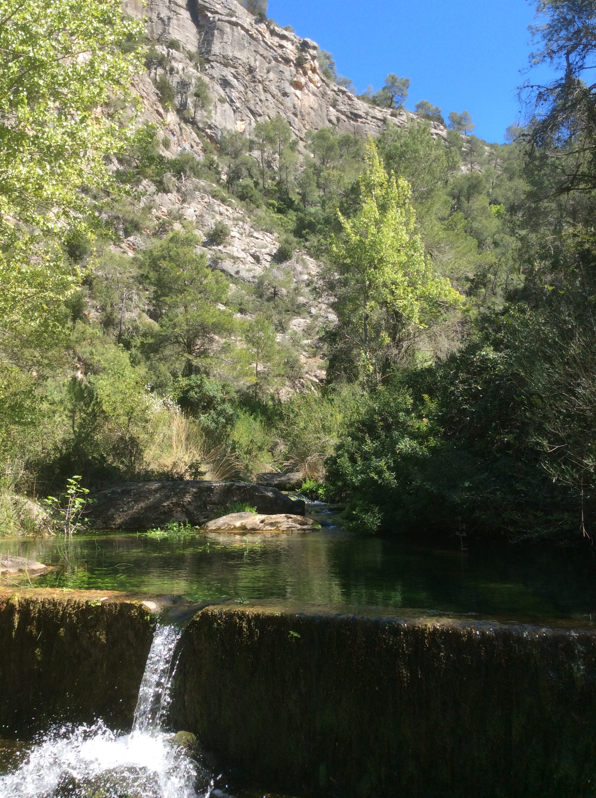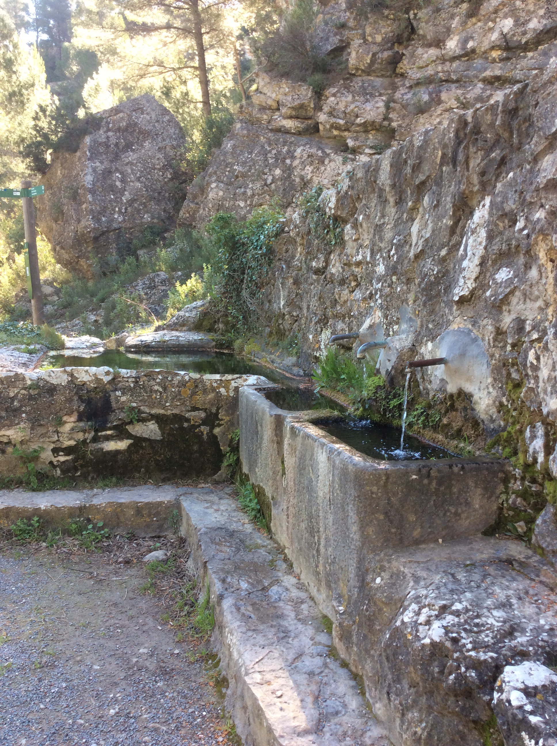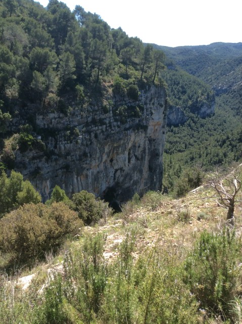 It was right hot now, on a south facing zig zag path, and the flying ants started to be interested in my arms and head. And I was running worryingly low on water. For three miles I stumbled forward as fast as I could, getting hotter, sweatier and a bit dizzy. Right at the valley bottom I heard running water. I left the track and cut westwards, coming across a mountain stream issuing from the bottom of the cliffs. I drank for England.