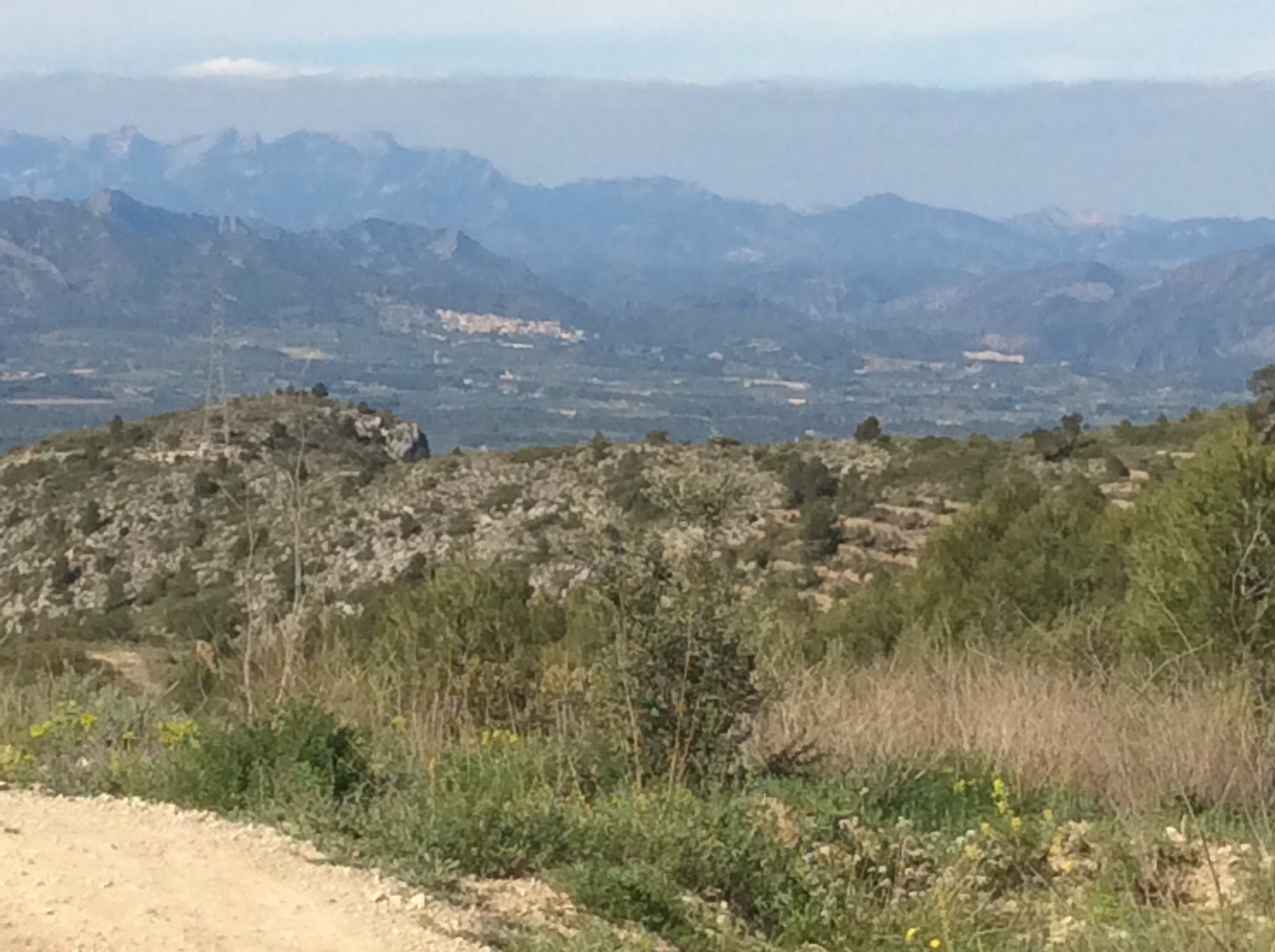 The most beautiful walk that I’ve done in Spain. The most frustrating and knackering walk I’ve done in Spain. What a day! A cereal bar and bottle of water for breakfast and set off at 9am up the road to Colldejou. The sky was clear, all day as it turned out, but there was a cold wind blowing off the mountains.