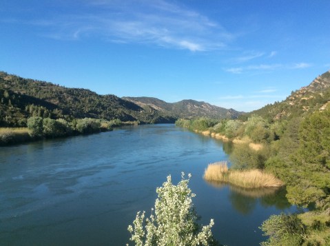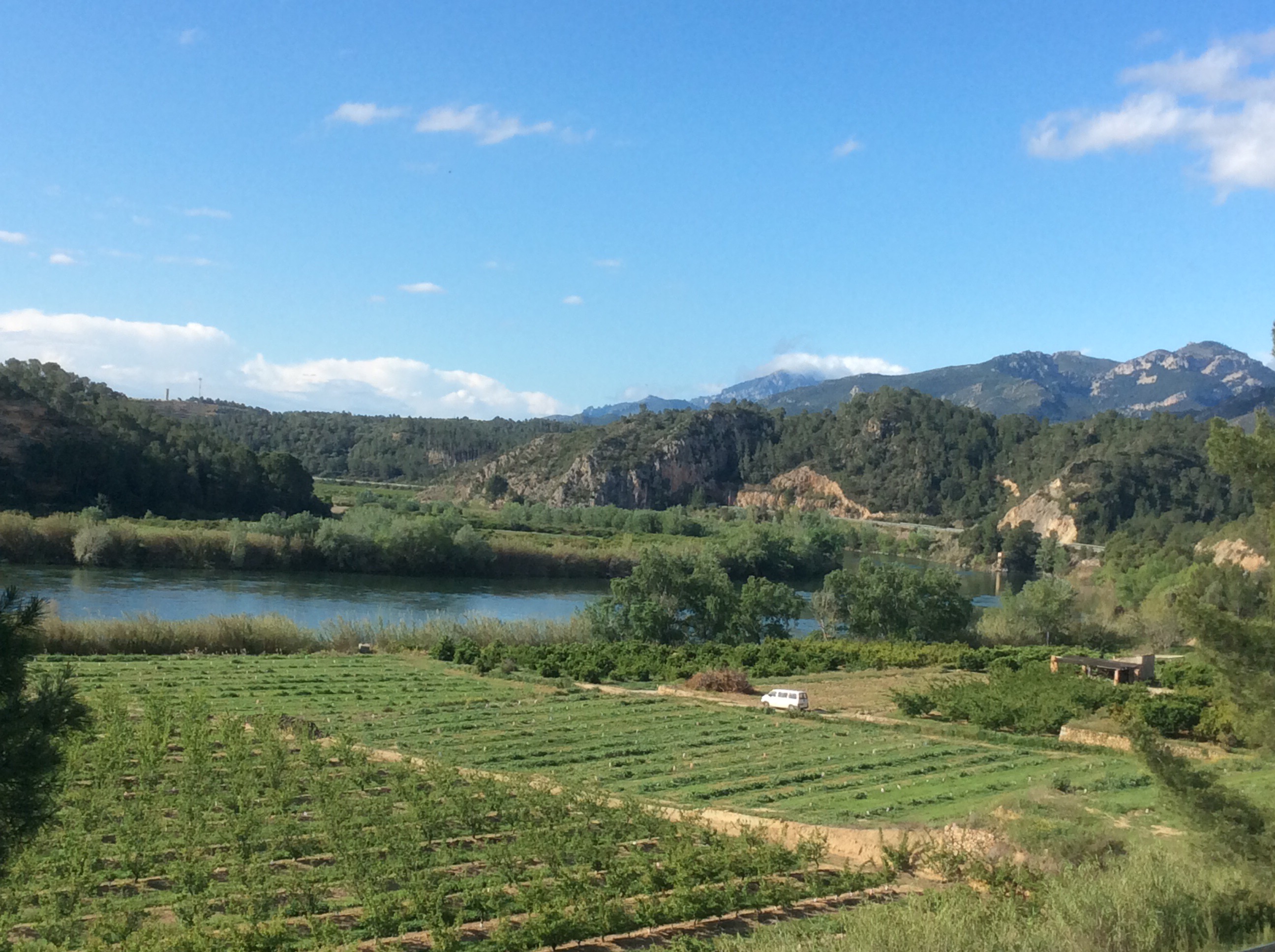And then with head down and teeth gritted, under a scorching sun – only April for Jesus Blade’s sake – I crunched the track to Rasquera and stopped in a cool bar for a drink. 3pm and 10 miles to go. Only 10 miles done in the last 5 hours. Gordon Bennett. I had read blogs that Mosquitos swarmed in their billions in the bottom of the Ebro valley. Bowland Climber, on his blog, had warned about it, even in relatively cool weather. I decided to follow old and new roads that mirrored and hovered above the GR7, which dropped right down to the river banks. My first viewpoint of the Ebro scanned both the downstream and upstream views. Quite magnificent. How lucky am I? Some of my friends and family can’t do this or join me for work or health reasons or whatever. To think that I can look at a map of anywhere and decide to walk it, and then do it, is beyond my ken to be honest.