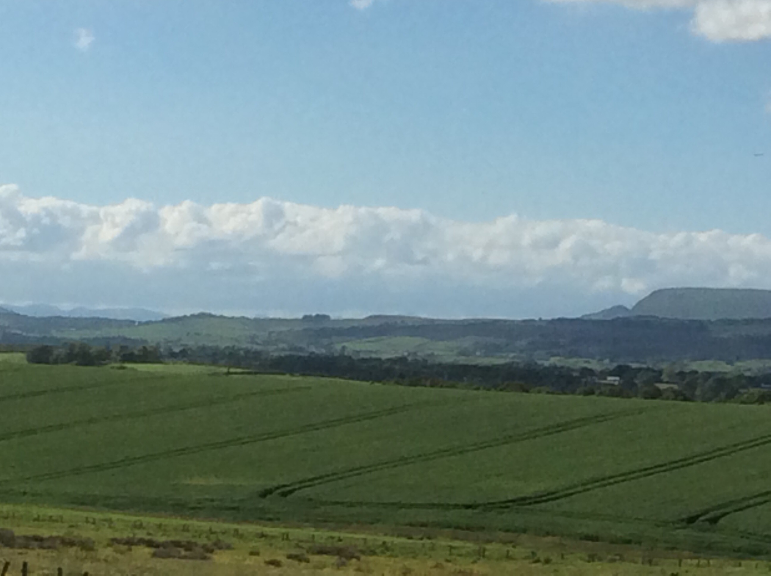 With the mountains on the southern edge of Loch Lomond visible thirty miles away on the left horizon.