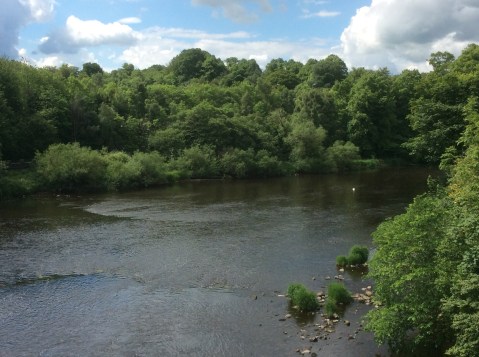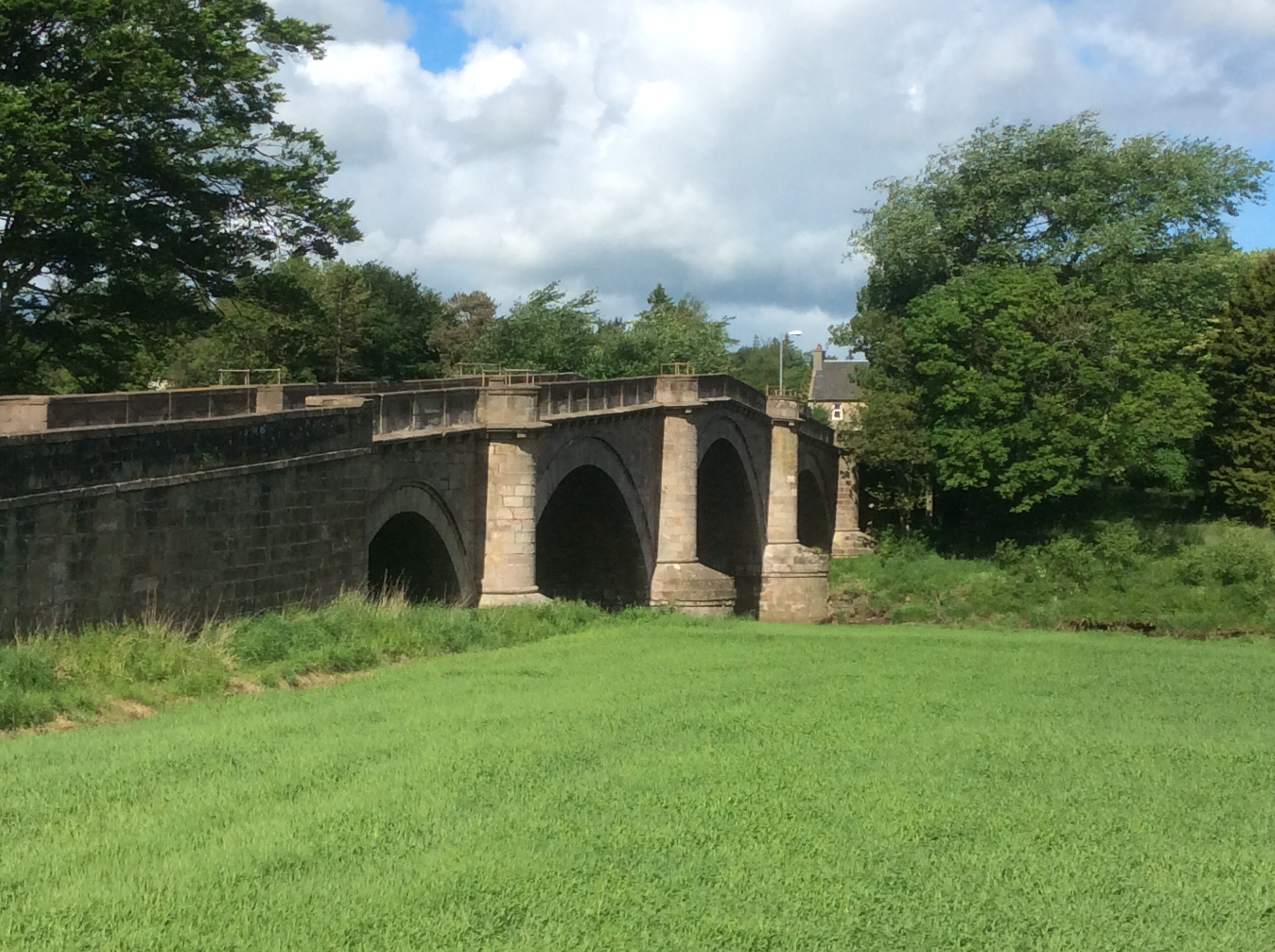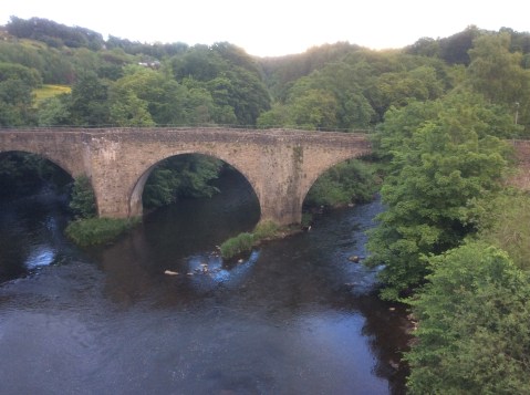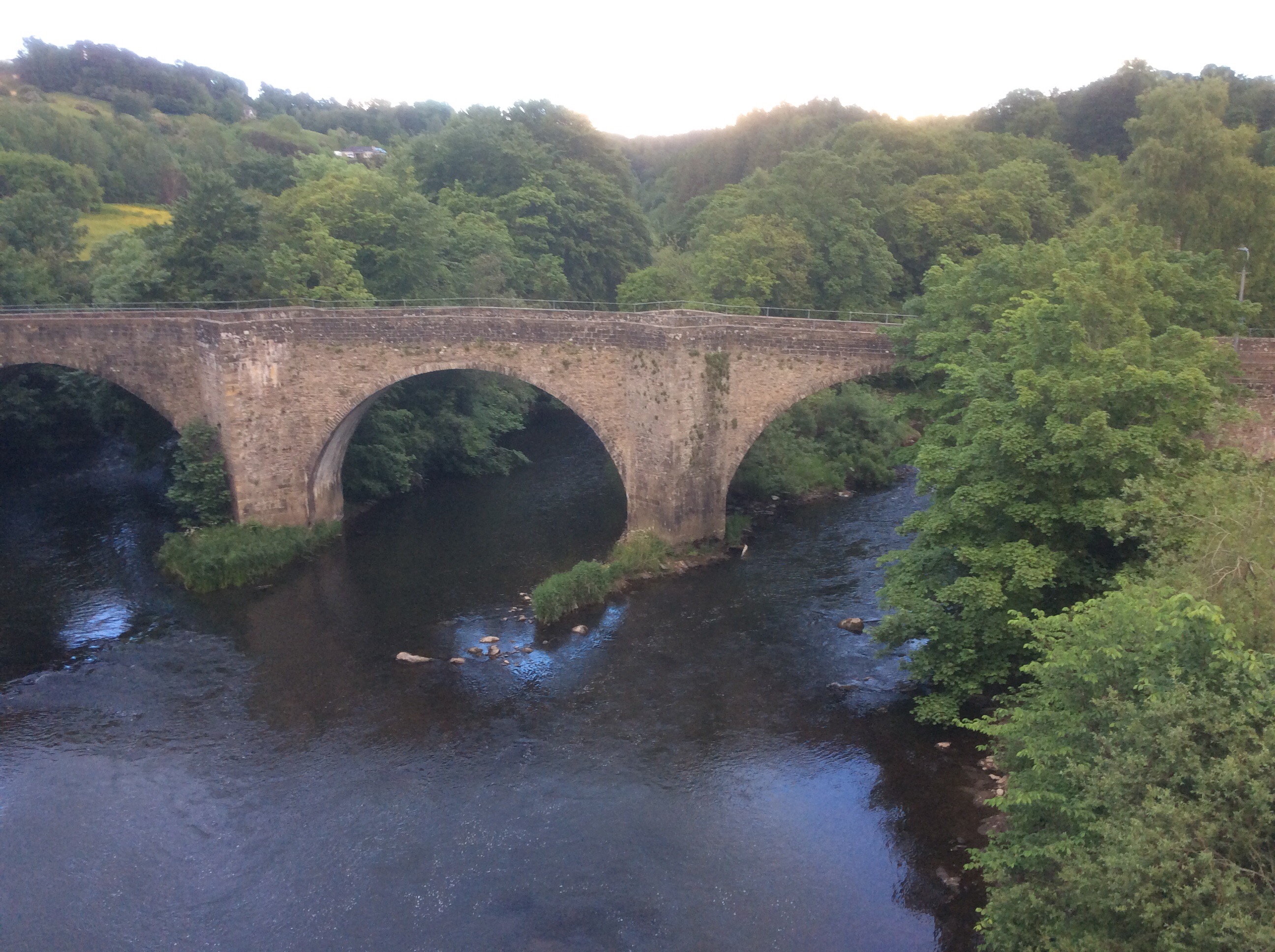 Just 13 miles today, from Lanark to Biggar, chasing the River Clyde upstream. My right foot is blistered with a long walk yesterday and I need to plaster up the poorly bits at some stage. Later. It just makes me walk a bit funny that’s all, and plenty of people have permanent conditions that make them walk a bit funny so I should rejoice and be glad. Dry morning and a cool breeze. The road dropped down to the Clyde from Lanark, crossing this elegant 250 year old bridge.