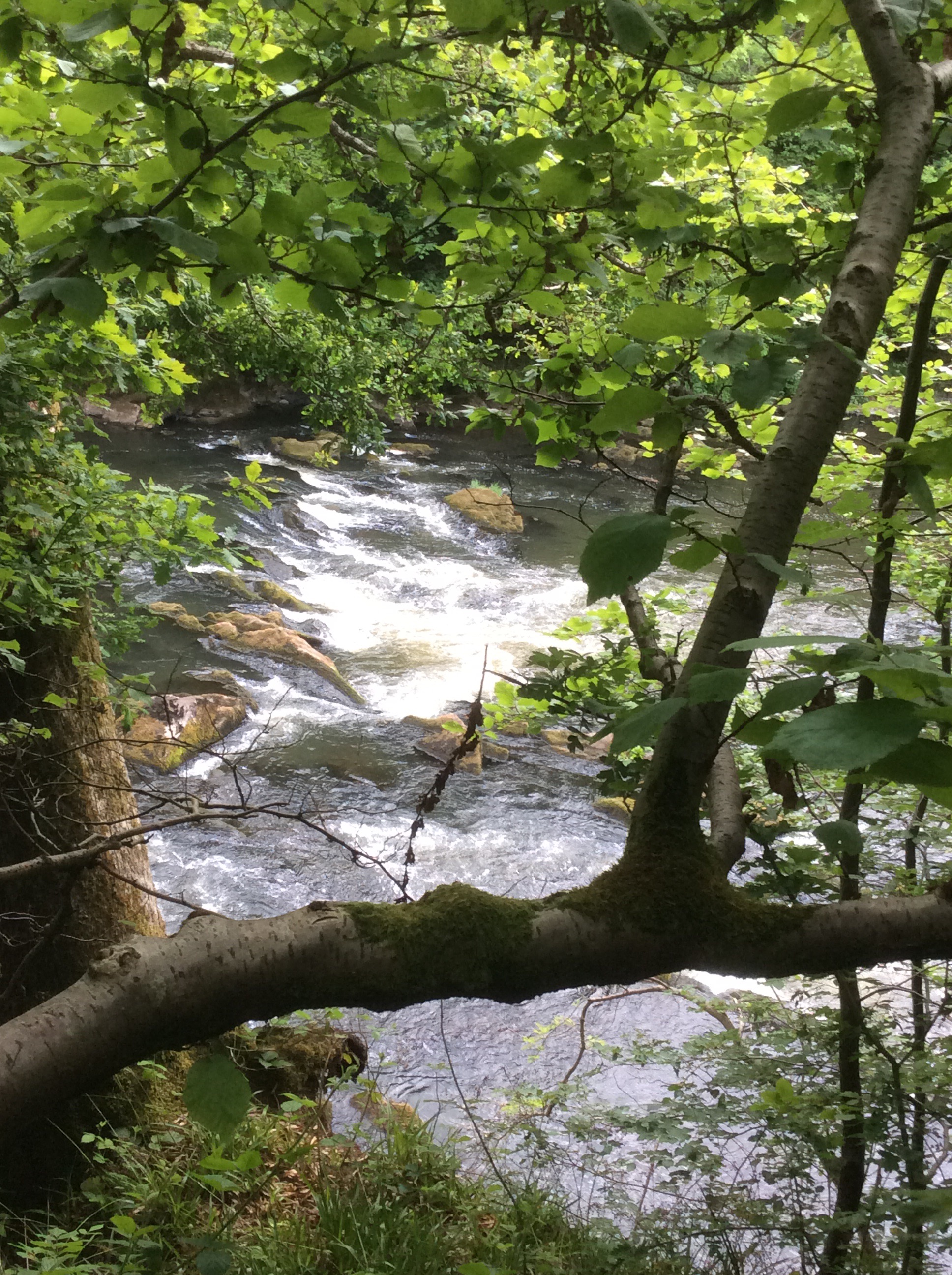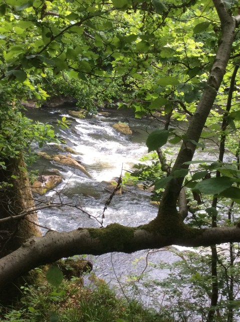 The air was not too warm, breezy but ambient, perfect for walking. The sun was hot but covered periodically by clouds, perfect for walking. The smells of dog roses, gorse, wild honeysuckle, wild garlic and the rushing water were a really lovely cacophony, perfect for smelling. I missed breakfast and only had a small mouthful of fresh water in my flask so I was getting quite hungry by noon, I’d set off at 8.30.