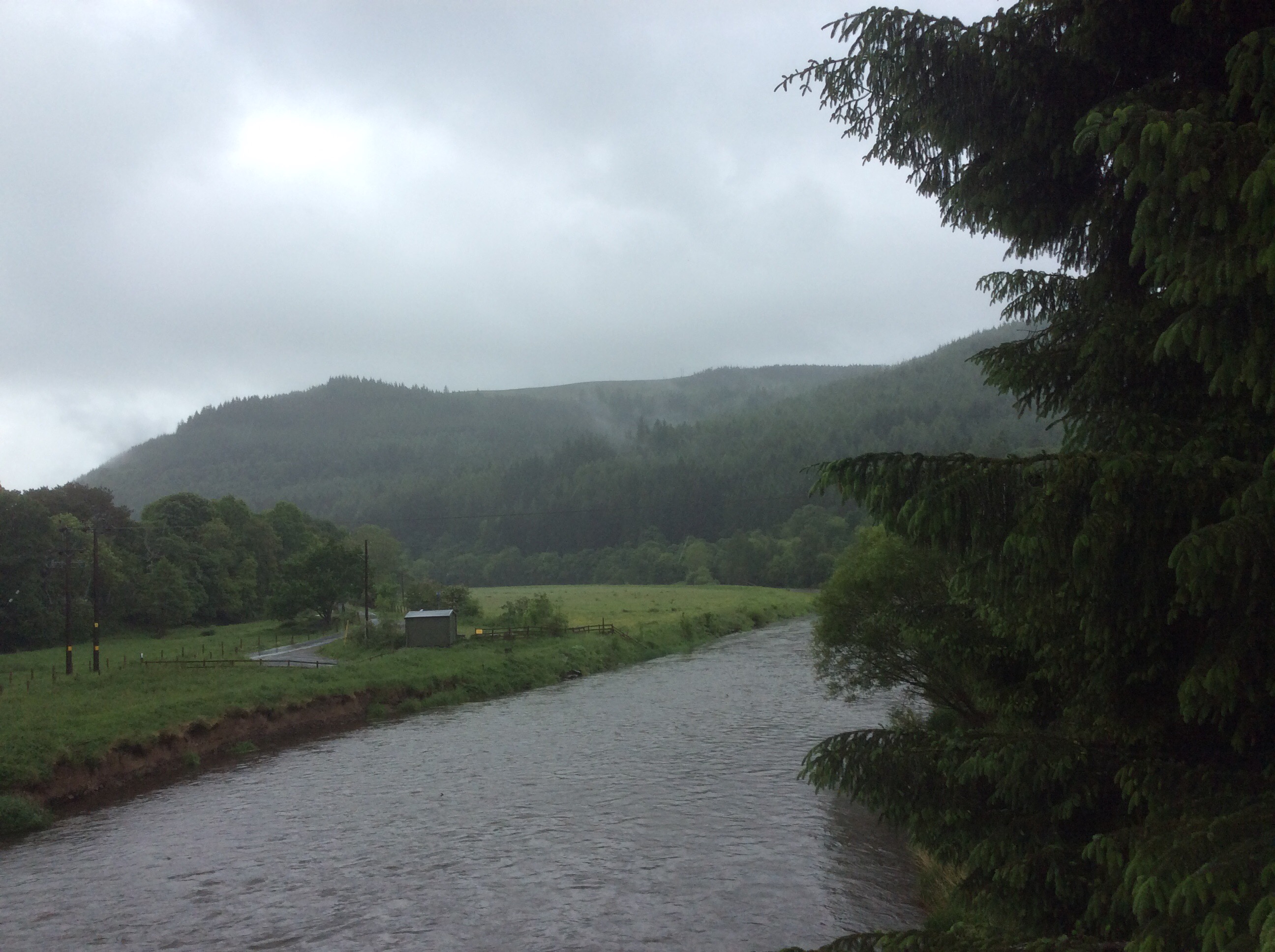 Coming into Innerleithen and looking back the view was overcast and damp.