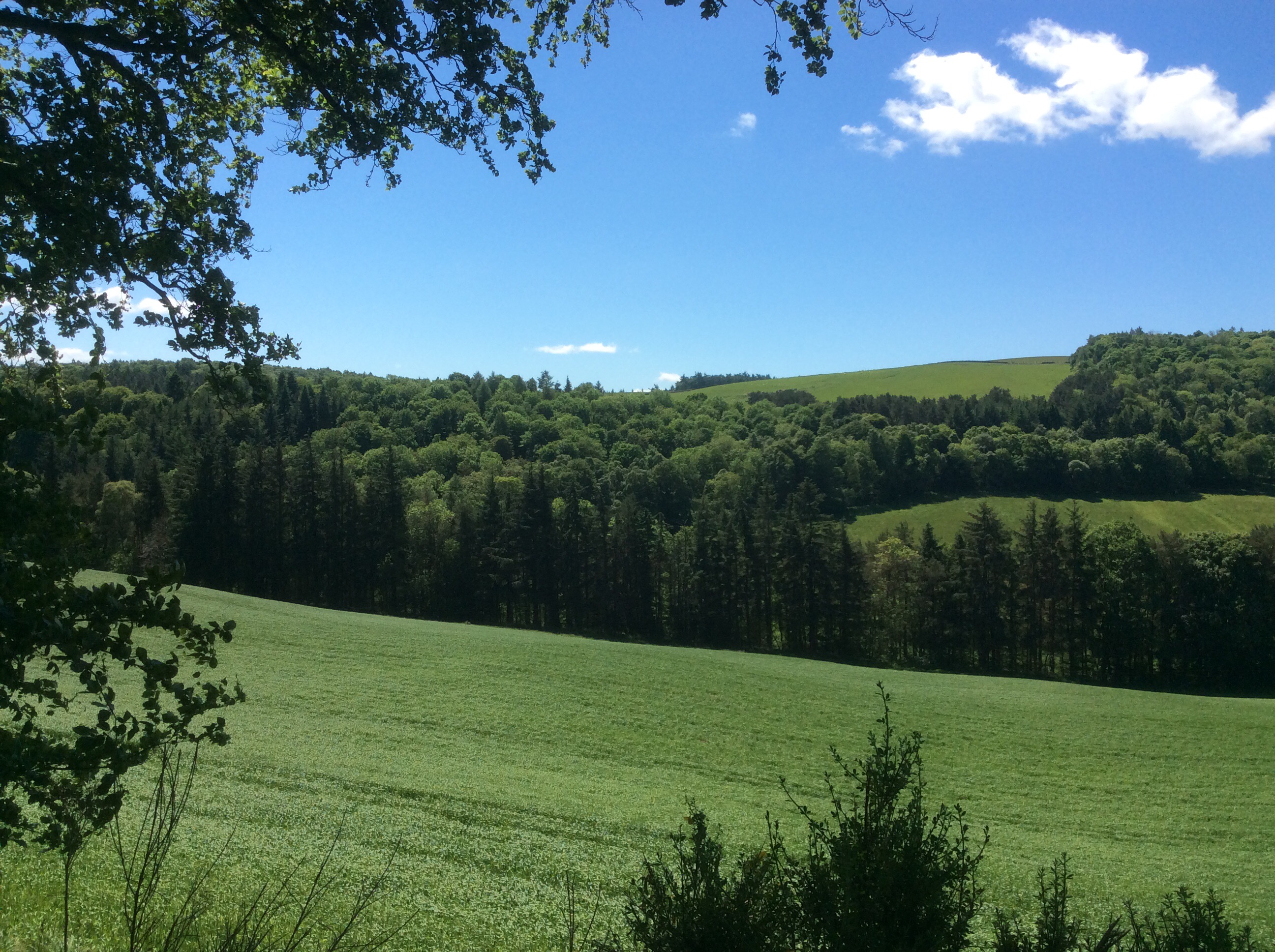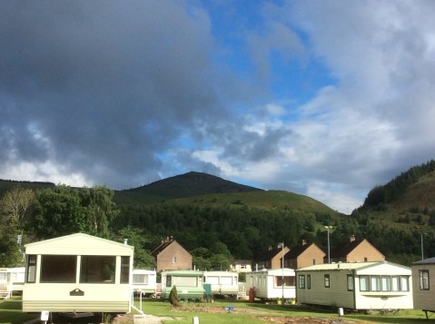 Tonight I’m at the Red Deer holiday park in my tent. I’m so happy to be in Scotland again. This is a view back north to Milngavie, hidden in a valley.