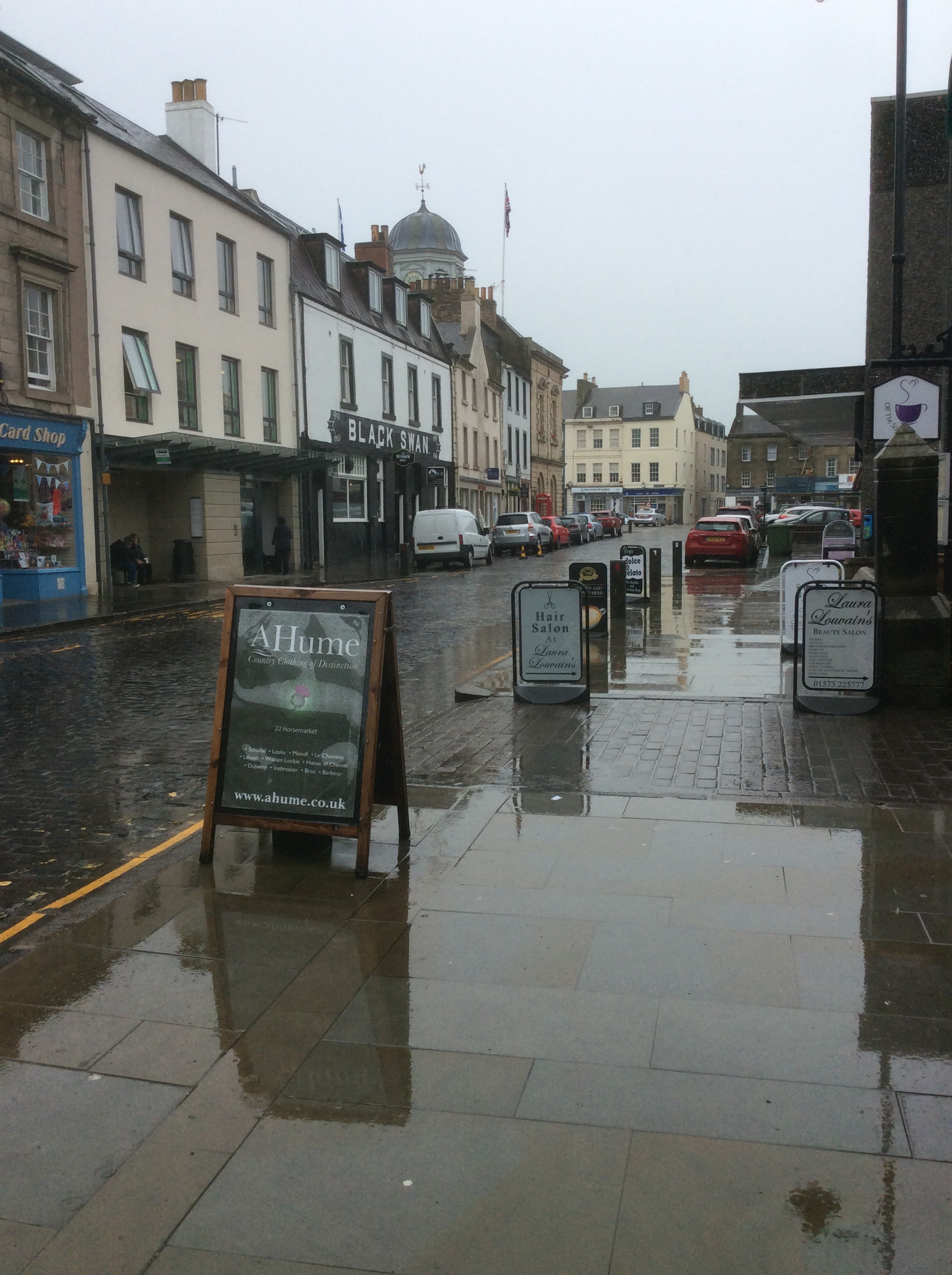 My last stop in Scotland so I got a couple of proper Haggis for the freezer from a local top quality butcher. The bus sped on through the rain, from Kelso to Berwick Upon Tweed, crossing the border to England just after Coldstream. I’ve just polished off sausage and mash in a hotel opposite the station. £6 for more than a normal man could eat, but I’ve been walking. And I’ve enjoyed the walk and will be starting from where I left off in Kelso on the 25th July heading south for a couple of hundred miles down the Pennine Way.
