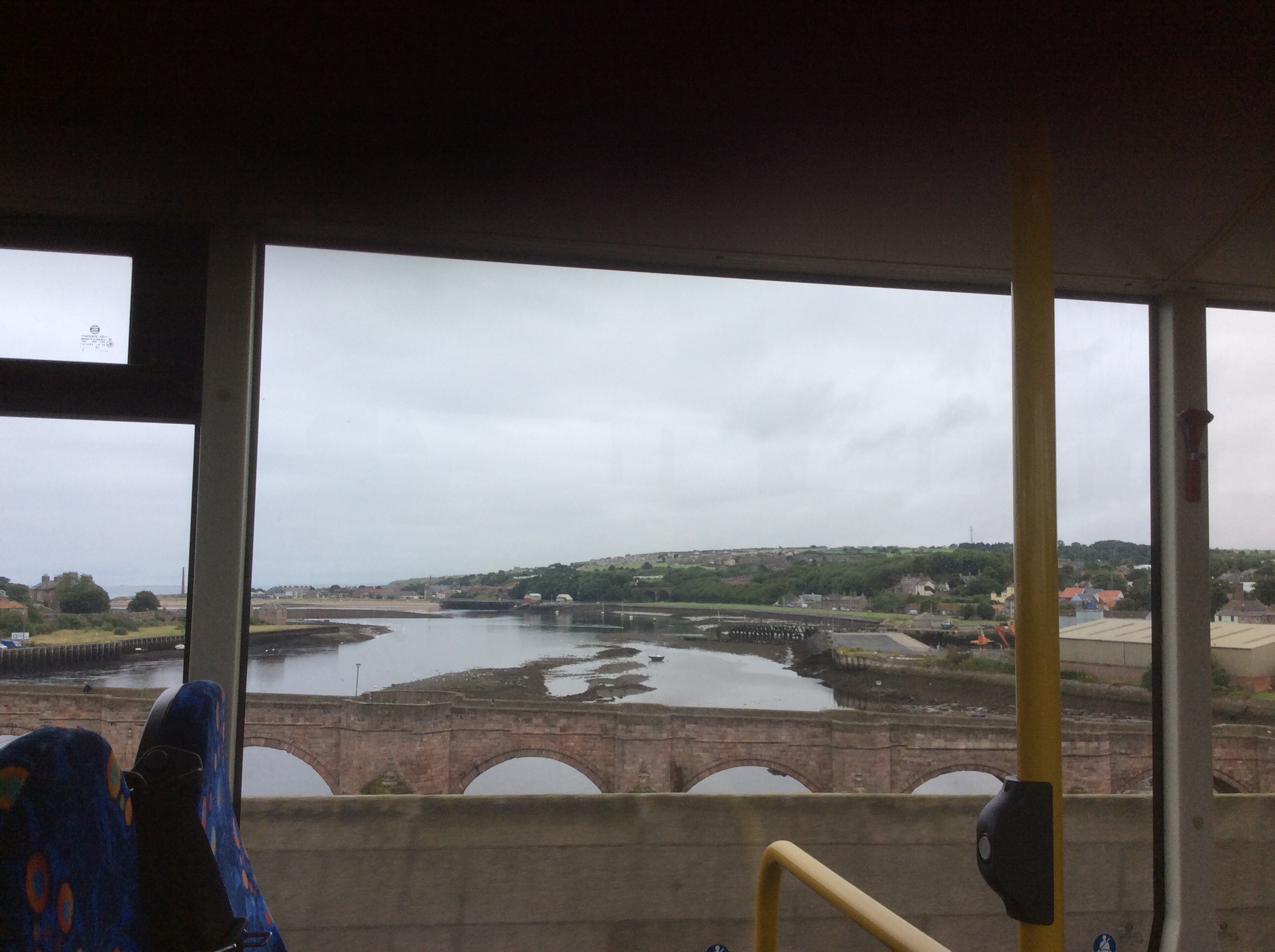 Well, the Pennine Way starts tomorrow, but today the walking was pretty good too. I had an early start from Leeds by train to Berwick upon Tweed, with a 5am alarm. Berwick was drizzly and cool. I had a 30 minute wait and then the 67 bus took me to Kelso, crossing over the Tweed estuary