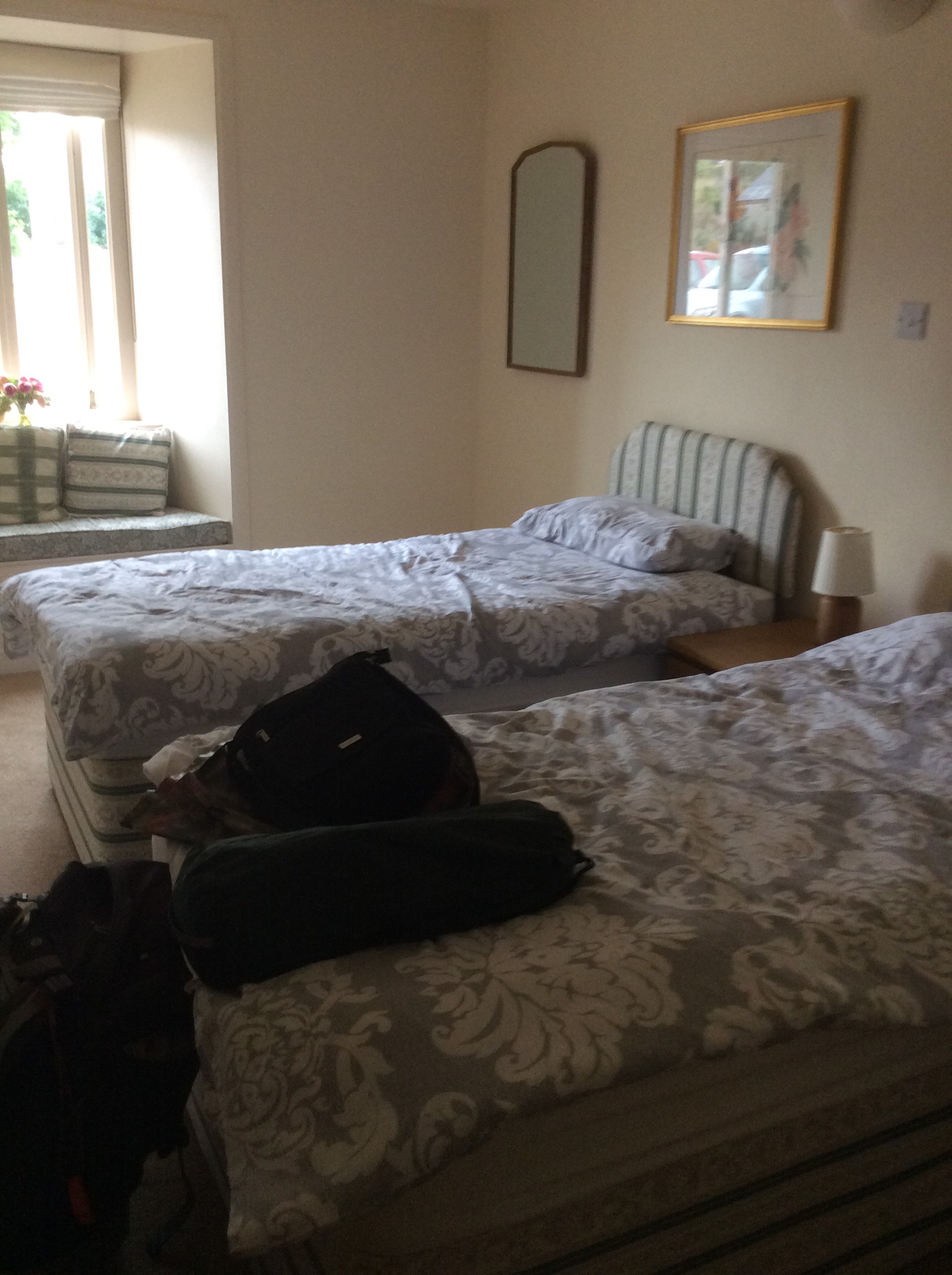 It was getting late and Maggie rang ahead to the guest house to let them know I’d be late. I was camping in their garden for £7. I legged it as fast as my sore shoulders, legs and soles of my feet would allow, turning up just before 7pm. Pitched the tent. Pub beer and burger. Booked myself in for breakfast tomorrow as well. Great end to an interesting day. In my sleeping bag for nine thirty.