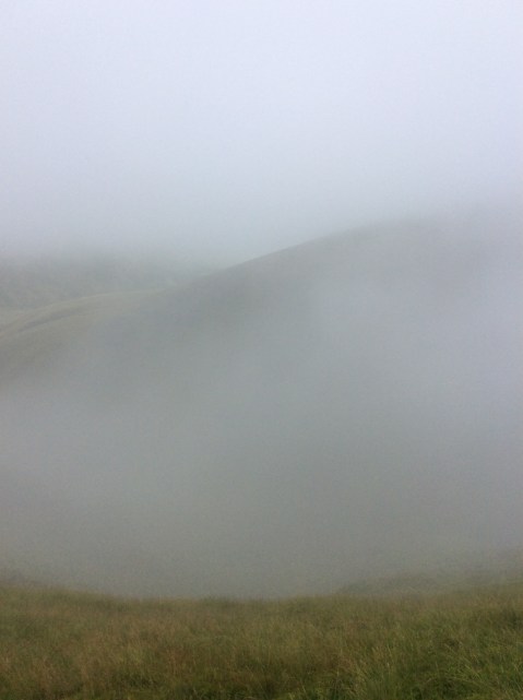 It was a struggle and the weight of my rucksack was slowing me down. The highest hill is The Cheviot itself which is around 2,300 feet but it was hiding in cloud, which was blasting through the valleys and over the tops. Under foot it was becoming increasingly boggy and although some sections were marked out by stone slabs some of these were under considerable water too. My feet had taken some boggy dunkings and my boots and socks were filled with muddy waters. Hello Muddy!