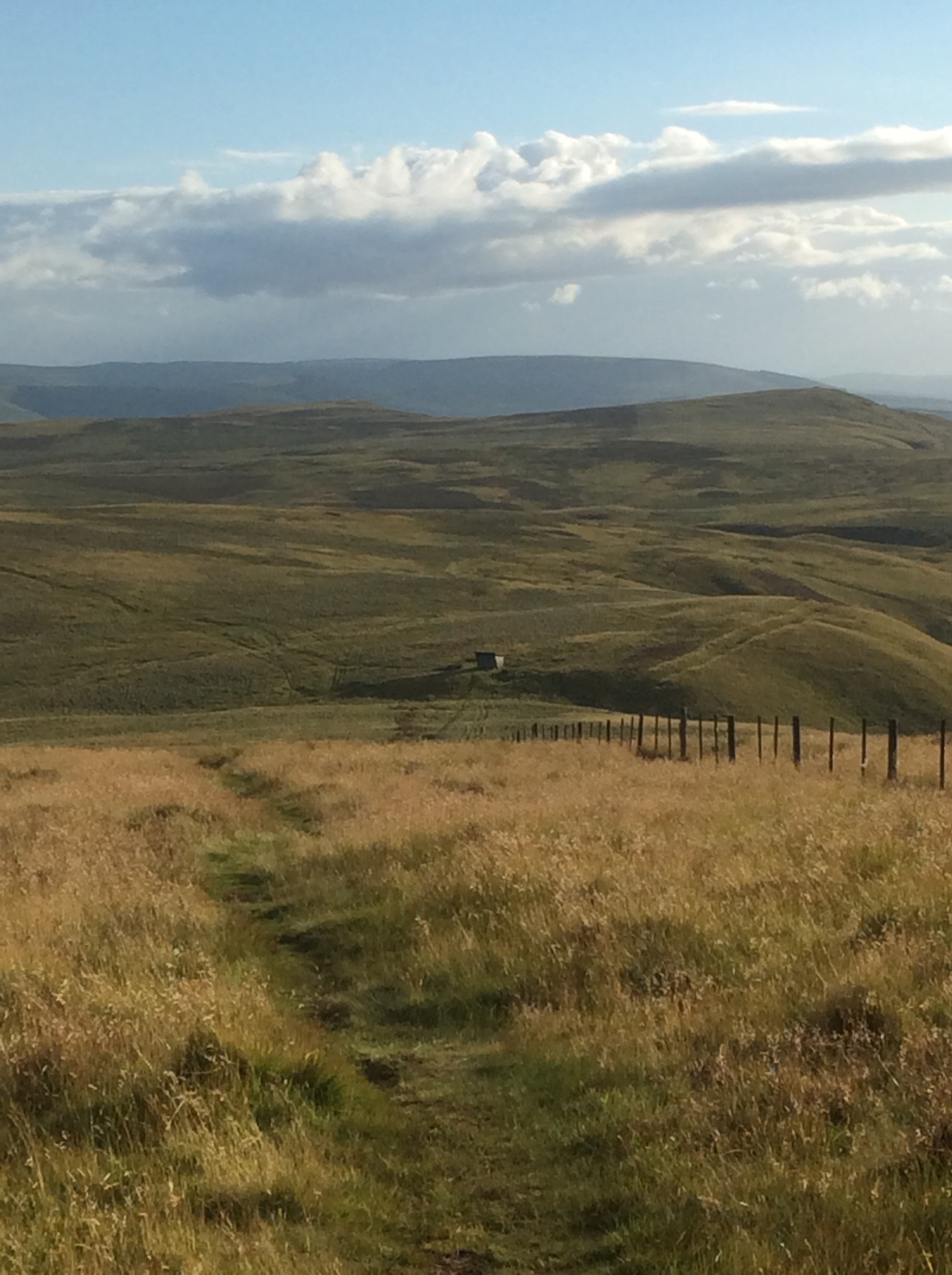 Rolling hills and deteriorating weather, without the very strong wind from yesterday. The army has training in this area and three lads with a trainer ran past me carrying heavy packs and machine guns. They must have been on officer training because they all said good morning. They also use this area as a firing range and they leave the empties lying about.